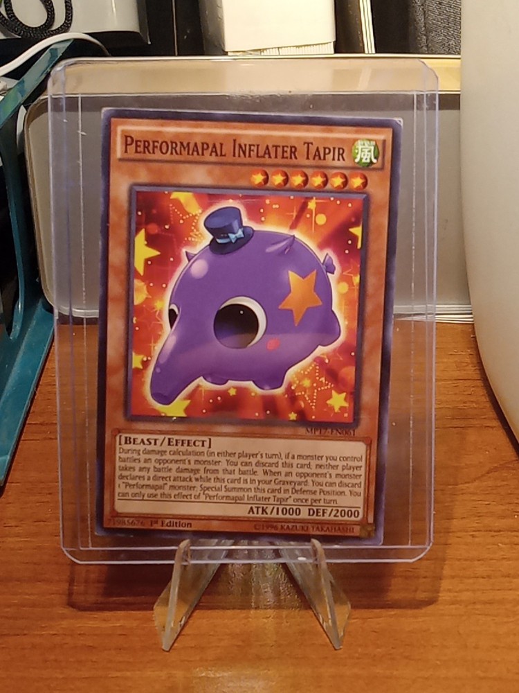 | Card Text | During damage calculation (in either player's turn), if a monster you control battles an opponent's monster: You can discard this card; neither player takes any battle damage from that battle. When an opponent's monster declares a direct attack while this card is in your Graveyard: You can discard 1 "Performapal" monster; Special Summon this card in Defense Position. You can only use this effect of "Performapal Inflater Tapir" once per turn. |
