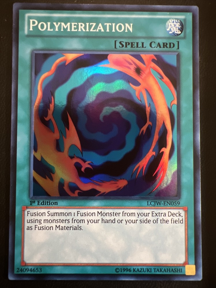 Up for sale is a Yu-Gi-Oh! TCG card, specifically the Polymerization from the Legendary Collection 4 Mega-Pack. This card is a 1st edition Spell-Normal type with the card number LCJW-EN059. It is highly sought after by collectors and players alike. The card is from my personal collection and has been well-maintained. It is in excellent shape and any imperfections, if any, are purely cosmetic. This is a great opportunity to add a rare and valuable card to your collection or deck. Don't miss out on this chance to own a piece of Yu-Gi-Oh! history. Buy multiple cards or item and save with combined shipping. MUST MESSAGE SELLER BEFORE CHECKOUT to receive combined shipping discount!! All cards shipped securely with sleeve and top loader. Please checkout my eBay store CardShark. New cards being added daily. Shipping usually within 1-2 days of payment. Please contact me immediately if there is ever an issue with a purchase. It will be remedied ASAP. If you are happy with a purchase please feel free to FOLLOW my store CardShark and leave some positive feedback. Thanks for shopping at CardShark and have an amazing day.