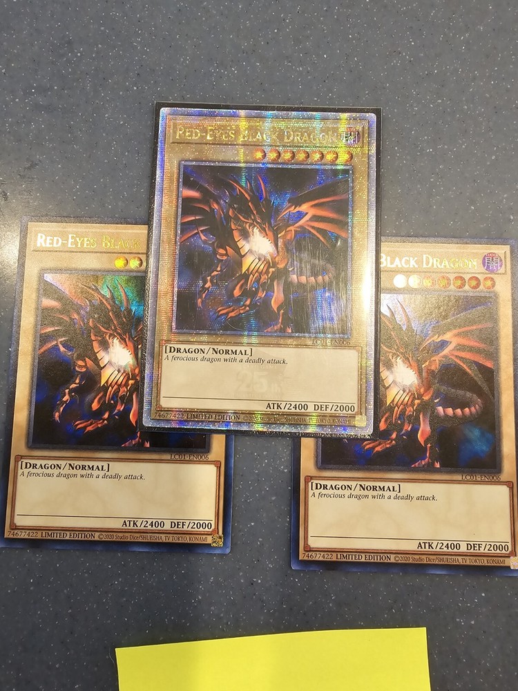 This set is a must-have for any Yu-Gi-Oh! fan! The Red-Eyes B. Dragon cards look amazing with their premium foil finish, and getting three in one pack is a fantastic deal. The artwork is stunning, and the quality feels top-notch. Perfect for collectors or players looking to add a legendary touch to their deck. Highly recommended!