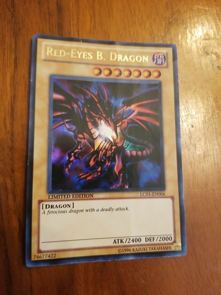 This Yu-Gi-Oh! TCG Red-Eyes B. Dragon card is a limited edition ultra rare card from the Legendary Collection set. It features a powerful dragon with 2400 attack power and 2000 defense/toughness, making it a valuable addition to any player's collection. The card is in excellent shape and ready to be played in any game. The manufacturer of this card is T C G and it is classified as a normal card. The card number is LC01-En006 and the creature/monster type is dragon. The card's color is dark and its rarity is ultra rare. This collector's item is perfect for any Yu-Gi-Oh! TCG fan and will surely impress other collectors.
