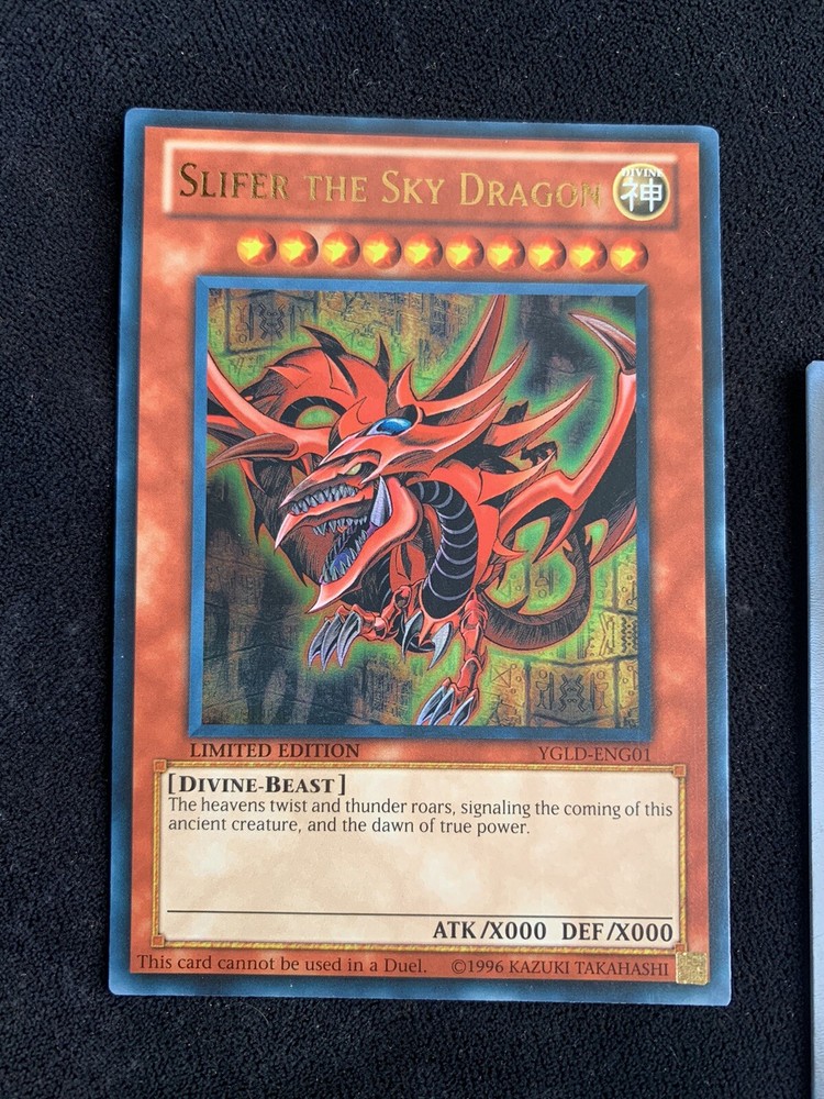 All 3 God Yugioh Monsters - the most powerful Monsters of all Time!! Slifer the Sky Dragon-YGLD-ENG01-NM/M Obelisk The Tormentor -YGLD-ENG02 -NM The Winged Dragon of Ra- YGLD-ENG03 -NM/M