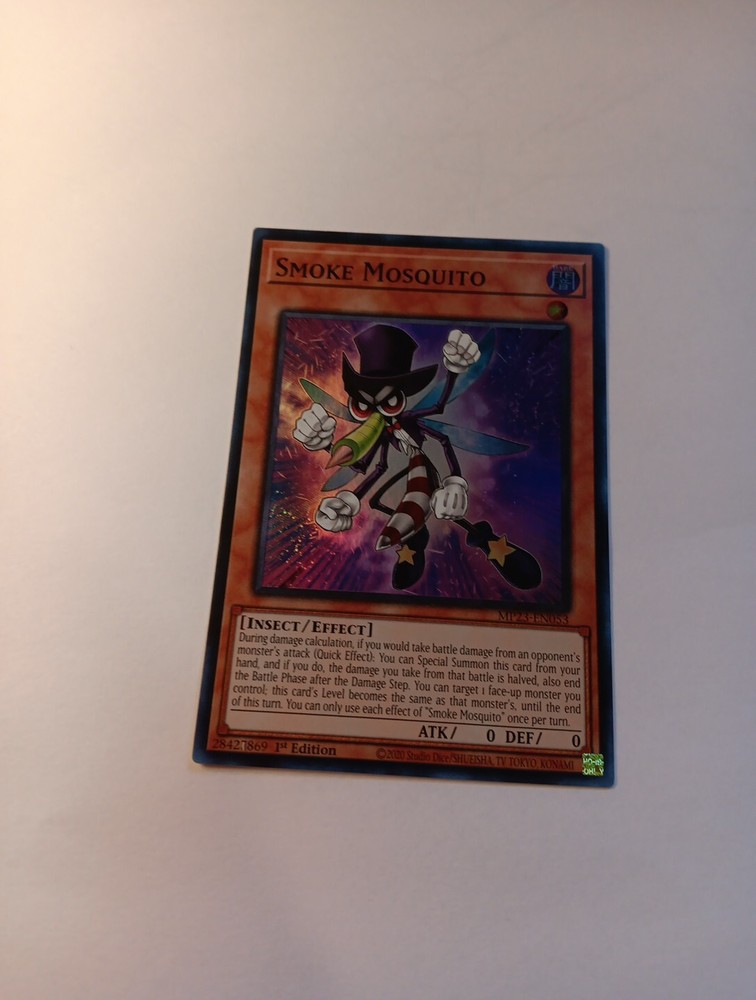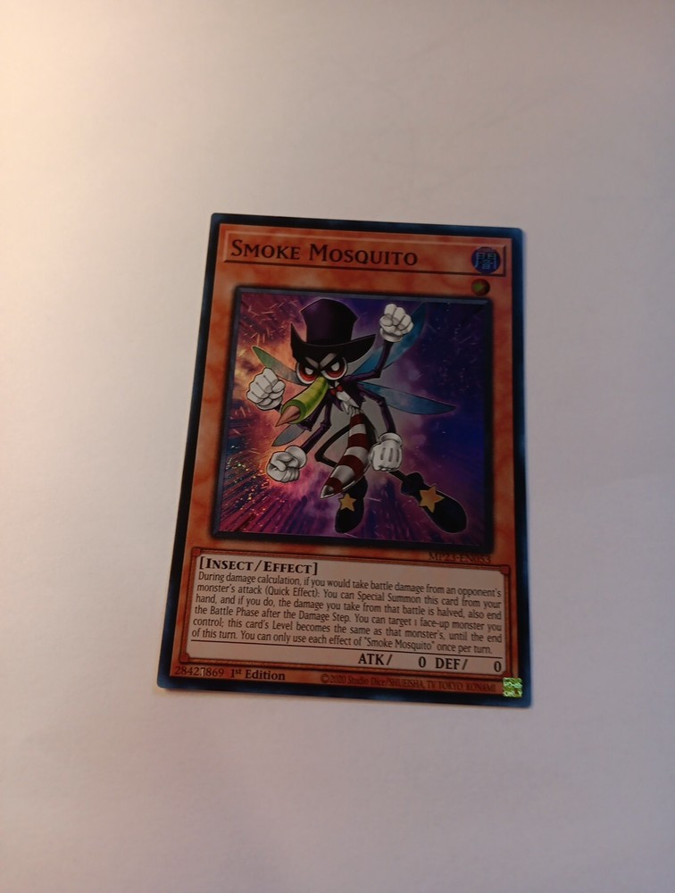 This Yu-Gi-Oh! TCG card is a must-have for any collector. The Smoke Mosquito card is a Super Rare card with an Attack/Power of 0 and a Defense/Toughness of 0. It is an Effect card with the Card Number MP23-EN053 and belongs to the 25th Anniversary Tin: Dueling Heroes Mega Pack set. The card features an Insect creature/monster type and a Dark color attribute. This 1st Edition card is perfect for any Yu-Gi-Oh! TCG enthusiast. It is a great addition to any collection and is sure to impress. Don't miss out on the opportunity to own this rare and unique card.