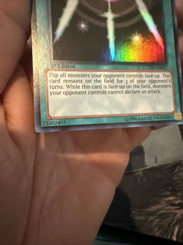 Card came fast, in advertised condition. Only slight issue is that it was shipped in a toploader without something covering the top so the card slipped out a little. Not really a big deal for such a low value card, and everything ended up being fine anyway. Thanks (: