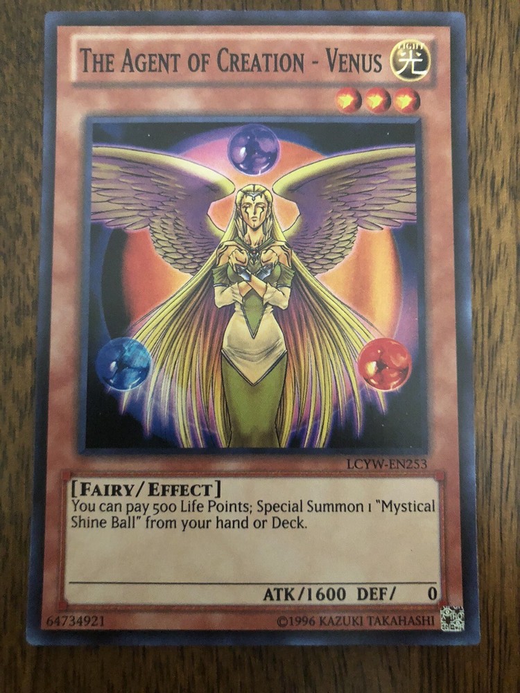 The Agent of Creation - Venus NM Super Rare from Legendary Collection 3: Yugi’s World. All cards are pack fresh unless otherwise specified. All cards are in a poly sleeve and top loader. Standard shipping. All cards are shipped in a poly sleeve, top loader, and team bag.