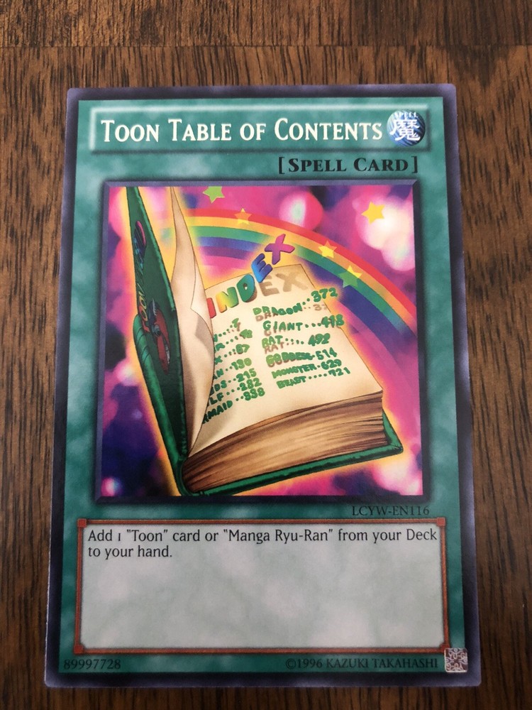 Toon Table of Contents NM Rare from Legendary Collection 3: Yugi’s World. All cards are pack fresh unless otherwise specified. All cards are in a poly sleeve and top loader. Standard shipping. All cards are shipped in a poly sleeve, top loader, and team bag.