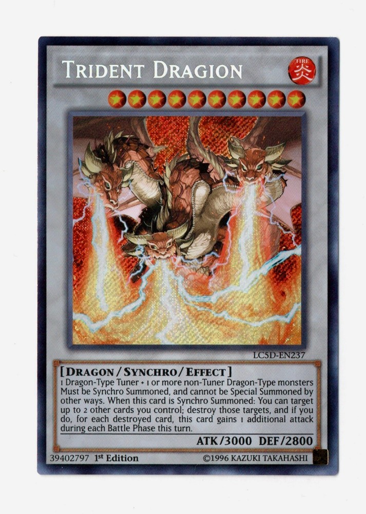 Trident Dragion from Legendary Collection 5D's set. GAME. You will be receiving card in photos. Mint condition. Please feel free ask if you'd like to see more photos! All card orders packaged with care using a penny sleeve, top loader and a team bag. Orders up to $20 will be shipped in a PWE, $20+ will be shipped in a Bubble Mailer, anything fragile/sealed (depending on the product) will be shipped in a box. All orders are shipped out within 24 hours.