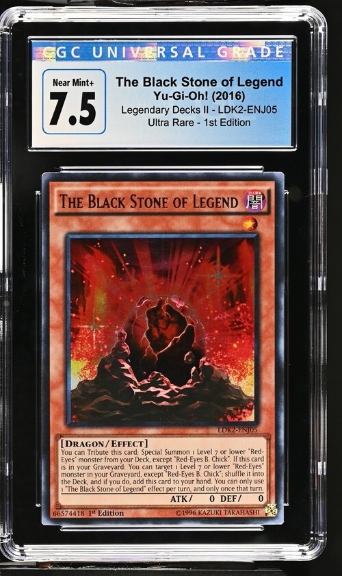 The Yu-Gi-Oh! The Black Stone of Legend LDK2-ENJ05 Ultra Rare 1st Edition card is a highly sought-after collectible card from the Legends set of the Yu-Gi-Oh! TCG. With its rarity and unique features, this card holds significant value to collectors and players alike. The 1st Edition status adds to its exclusivity and desirability, making it a prized possession for any Yu-Gi-Oh! enthusiast. *You will receive exactly what is pictured.