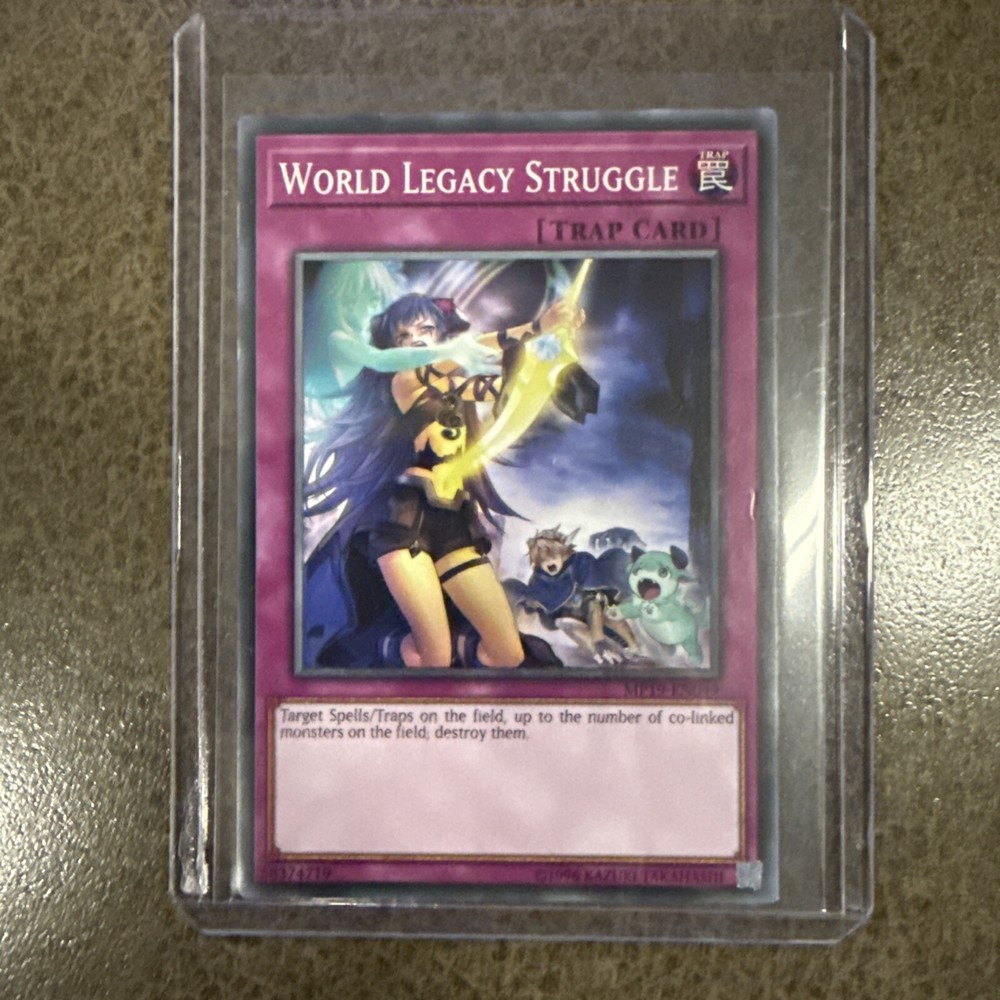 YuGiOh! - World Legacy Struggle - MP19-EN049 is a Common 1st Edition Trap Card from the 2019 Mega-Tins: Gold Sarcophagus set in the Yu-Gi-Oh! TCG. It features a regular finish and is a collectible card game individual card.