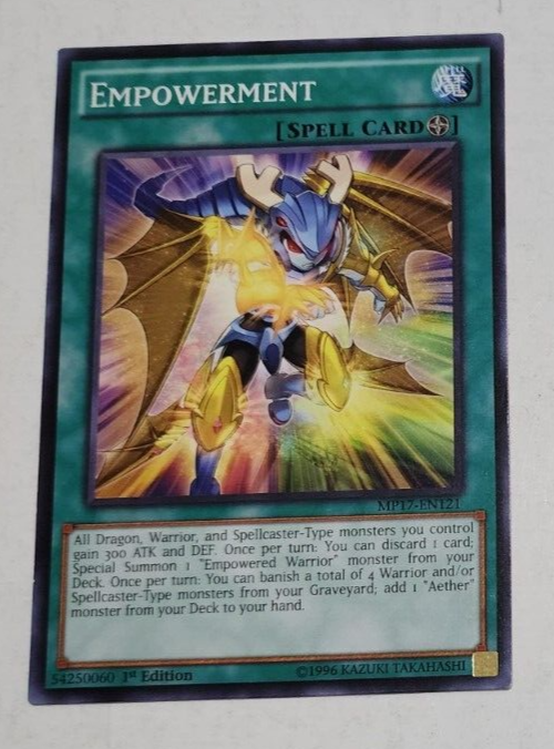 Yu-Gi-Oh! Yugioh Empowerment MP17-EN121 1st Edition Common LP - Card has been lightly used, and may have some slight wear. - From a smoke-free home - Ask any questions prior to purchasing - Please view all photos - Please read entire item condition and description before purchasing - Returns: Buyer must contact me within 30 days of receipt of item, item must be returned in original condition and buyer pays return shipping - International Buyers: You are responsible for any customs or import fees. These charges are not covered in your shipping costs. First Class International Shipping does NOT provide tracking information. 1/13/24