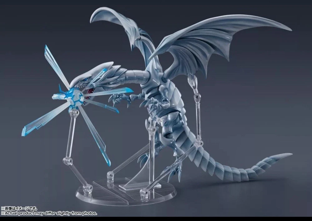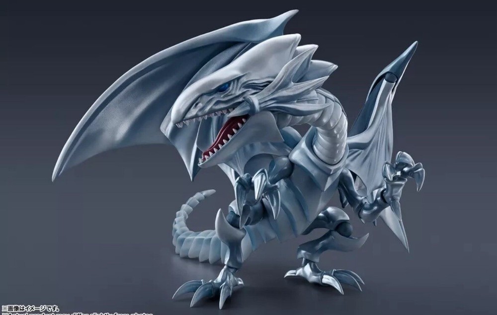 This product is a new and sealed Bandai action figure of the Blue-Eyes White Dragon character from the Yu-Gi-Oh! franchise. The figure is part of the S.H.MonsterArts line and features detailed sculpting and painting. It is a vintage item that would make a great addition to any collector's action figure collection.
