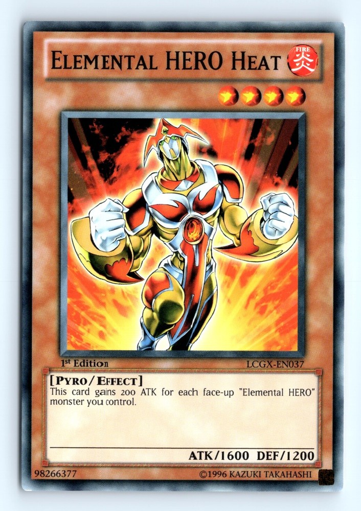 Cards 20$ or Less in Price Will be shipped in a penny sleeve and in a top loader or Semi Rigid card holder by Ebay standard envelope. Please check out the scans for a good look at the condition. This is a example of a Legendary Collection 2 #LCGX-EN037 Elemental HERO Heat . Please check out our other listings for more great cards.