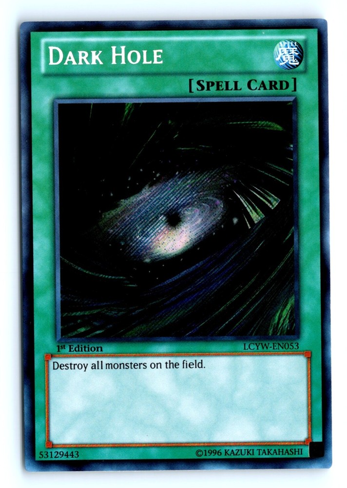 Cards 20$ or Less in Price Will be shipped in a penny sleeve and in a top loader by Ebay standard envelope. Please check out the scans for a good look at the condition. This is a example of a Legendary Collection 3: Yugi's World #LCYW-EN053 Dark Hole .Other important information about this card: Secret RareIn 0 Dark Hole played for the .Please check out our other listings for more great cards.