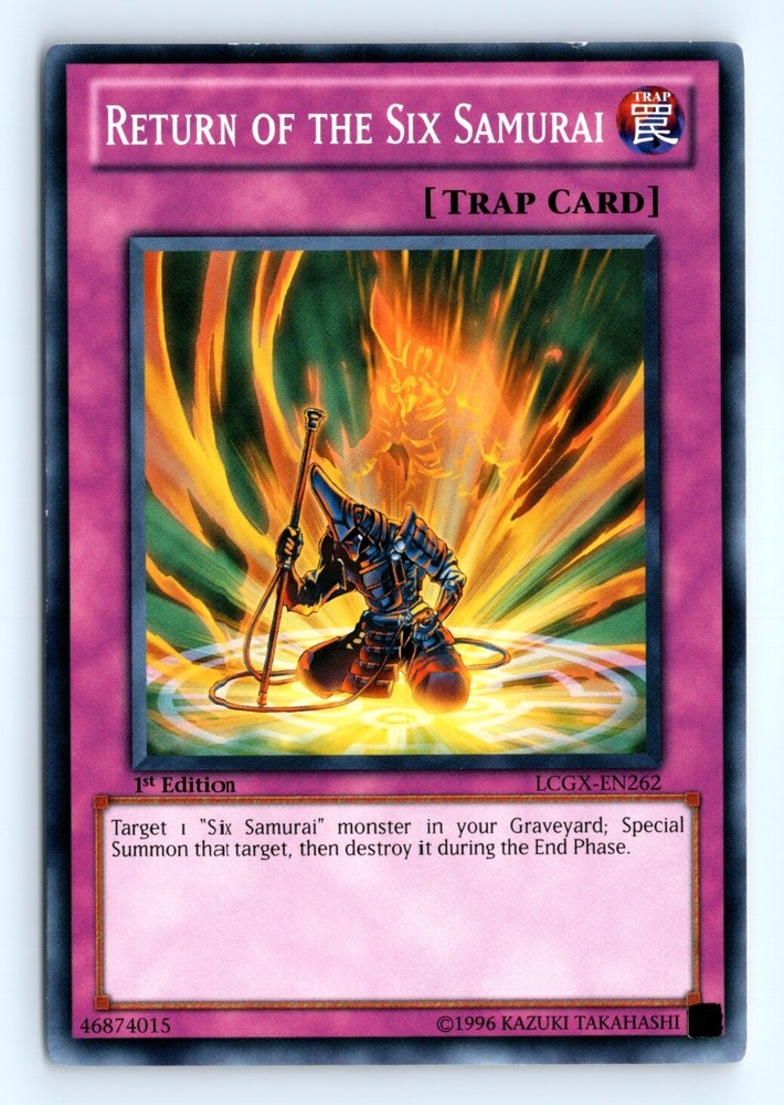Cards 20$ or Less in Price Will be shipped in a penny sleeve and in a top loader or Semi Rigid card holder by Ebay standard envelope. Please check out the scans for a good look at the condition. This is a example of a Legendary Collection 2 #LCGX-EN262 Return of the Six Samurai . Please check out our other listings for more great cards.
