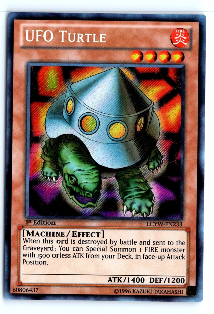 Cards 20$ or Less in Price Will be shipped in a penny sleeve and in a top loader by Ebay standard envelope. Please check out the scans for a good look at the condition. This is a example of a Legendary Collection 3: Yugi's World #LCYW-EN233 UFO Turtle Secret Rare . Please check out our other listings for more great cards.