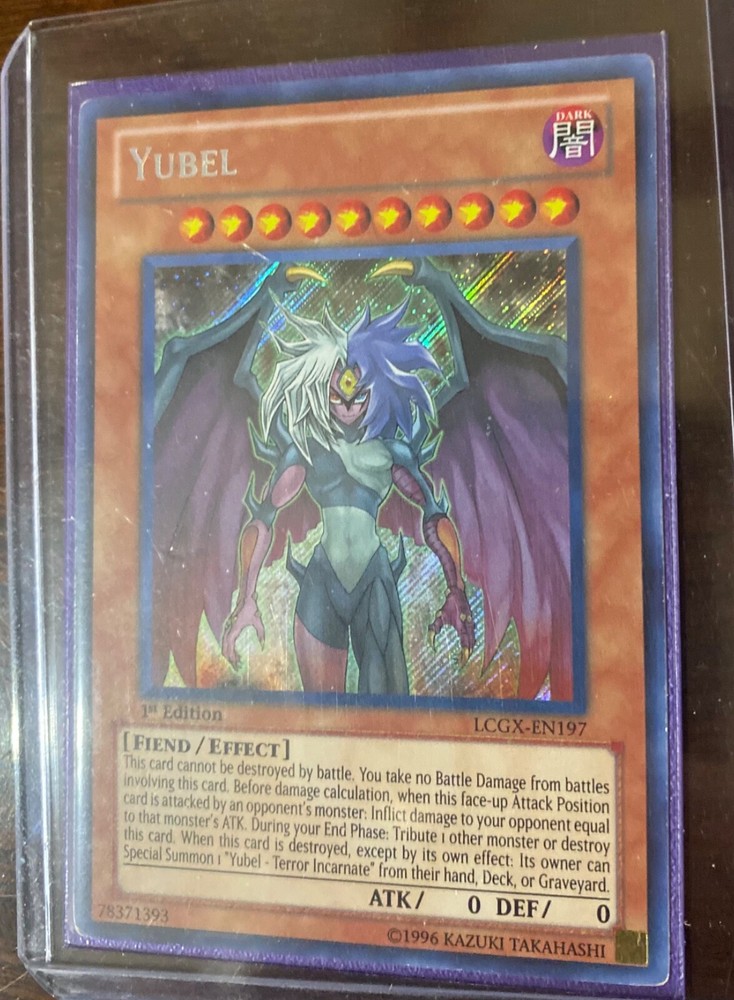 The product is a Yu-Gi-Oh! TCG card named Yubel from the Legendary Collection 2: The Duel Academy Years set. This Secret Rare card is an Effect Monster of Fiend type with 0 ATK and 0 DEF. It is in English and is a 1st Edition card with the card number LCGX-EN197 manufactured by Konami. It is a valuable collectible card for fans of the Yu-Gi-Oh! trading card game.