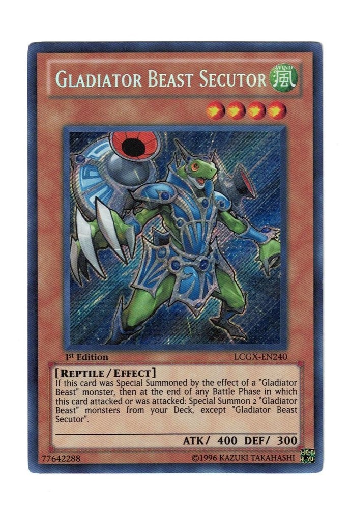 What's Included: Cds Card Name Rarity Edition Set Code Condition 1 Gladiator Beast Secutor Secret Rare 1st Edition LCGX-EN240 Light Play Additional Comments: All Pictures are scans of actual product(s) Shipping/Feedback: International Shipping is handled by eBay. 100% Positive & 5 Star Feedback 3 Years Running. Orders Paid before 11 ET are shipped SAME DAY. Cards are shipped in penny sleeve(s) and toploader(s). Bubble Envelope and Tracking on Higher Cost Items. Card Grading: Grading cards is a subjective art form. I try to follow the TCGPlayer(Recently purchased by eBay) grading guide. Sometimes I will even put a grade like Very Light Play or Light to Moderate. The reason for that is because a card could be on the High or Low end of a Grade. Near Mint (NM) - Mostly clean card with very few flaws. Card should have clean corners with no wear but could have a tiny ding at a corner or edge. There could be some minor scuffing and scratches more so on the back. I am stricter regarding the front of the card. Keep in mind I even open fresh packs and get cards with scratches and corner dings. If you are a card collector message me if you have any questions. Especially for cards from older sets. Light Play (LP) - Cards will have some corner and/or edge wear. There could be a small bend but nothing major. There could also be some minor scuffing on the front. If I see more than a few dings, nicks and scratches I willl downgrade the card to Moderate Play. Moderate Play (MP) - Cards have a wide range of conditions. This could include cards that are very close to Light Play or close to Heavy Play. Expect some bends and/or a crease or two. I don't usually sell cards in this condition so it you want an exact grade please contact me. Heavy Play(HP) - What can I say. The card is a total wreck. Creases and heavy wear.