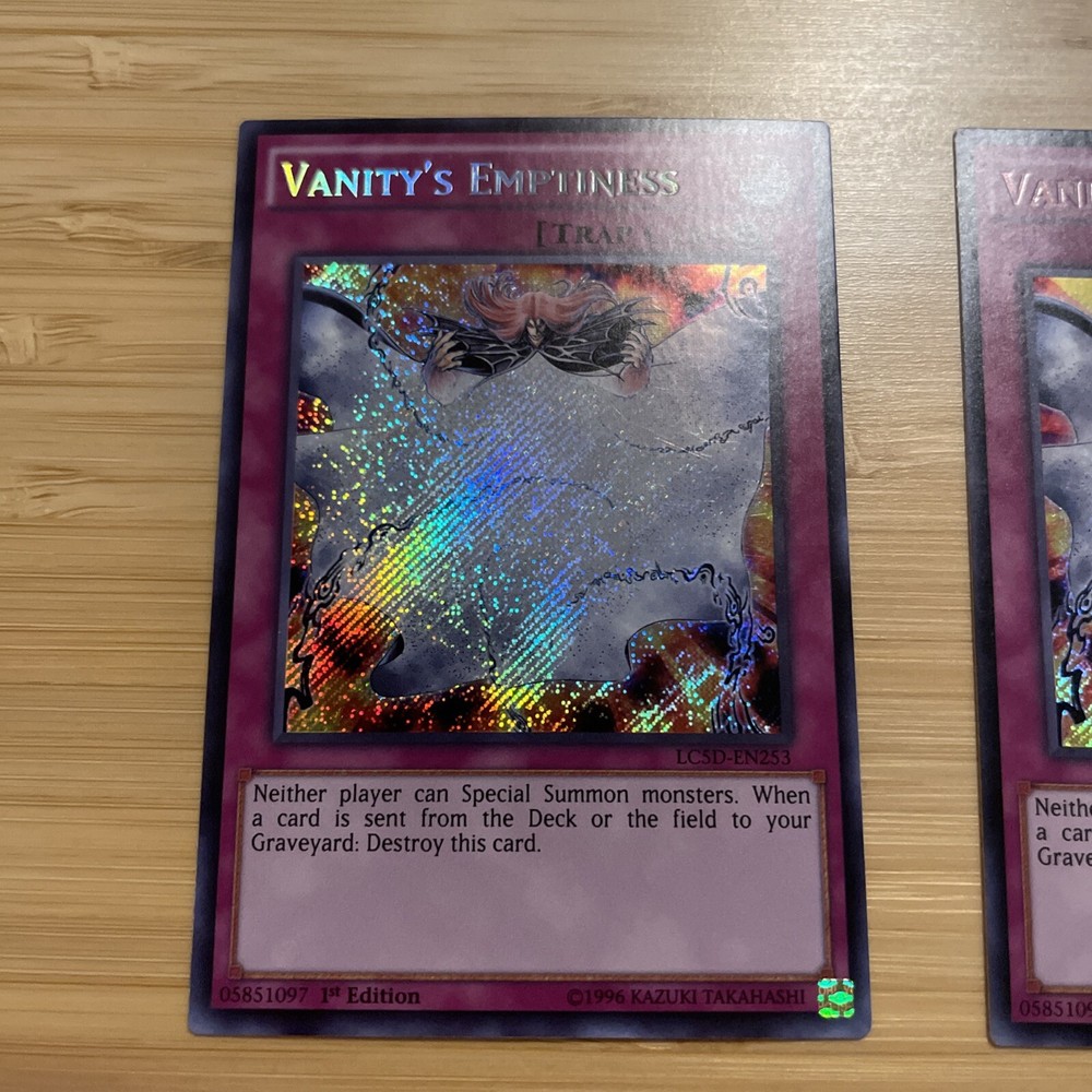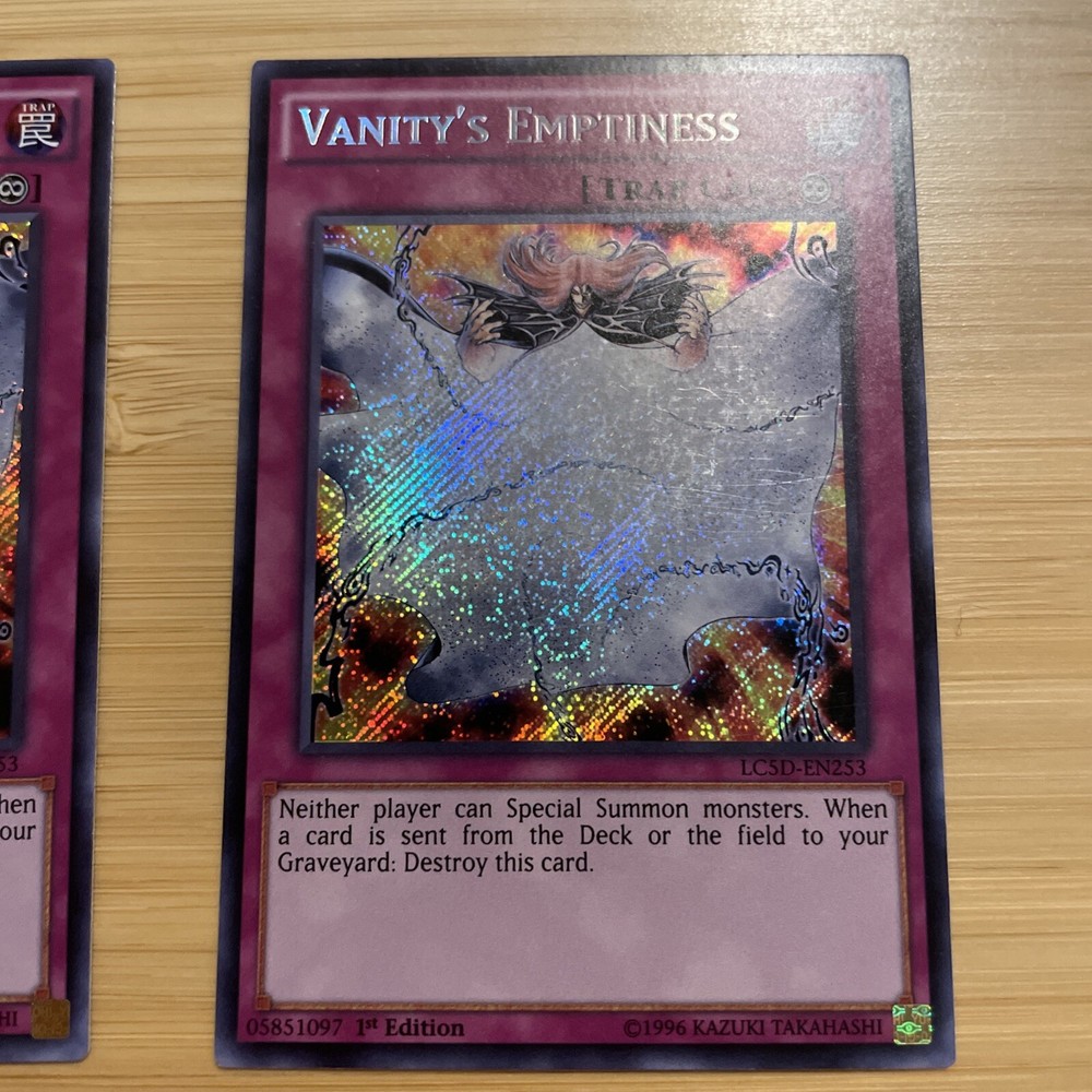 Hello! This listing is for the following card: 1x Vanity’s Emptiness Secret Rare 1st Edition NM Message me with any questions, thanks!