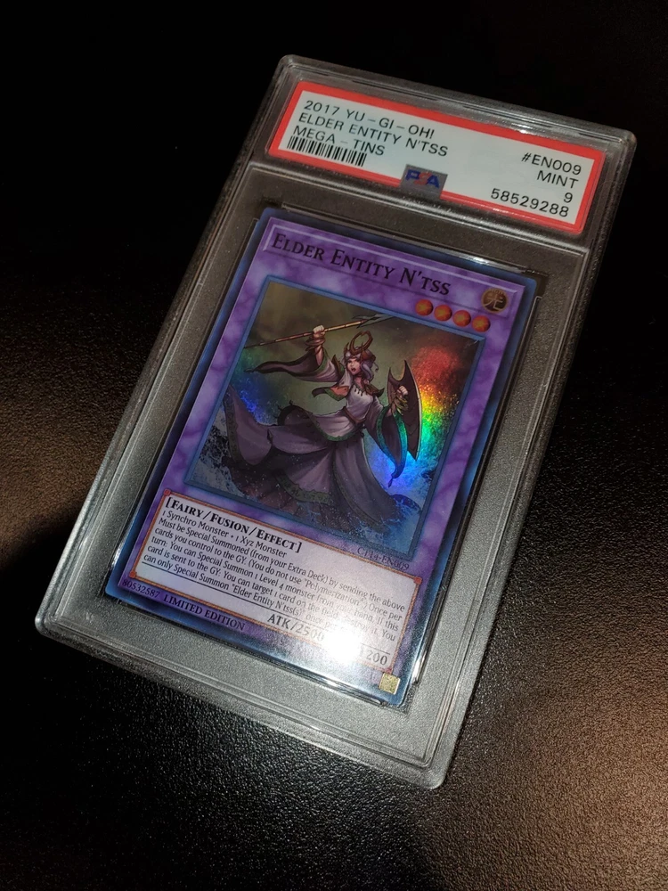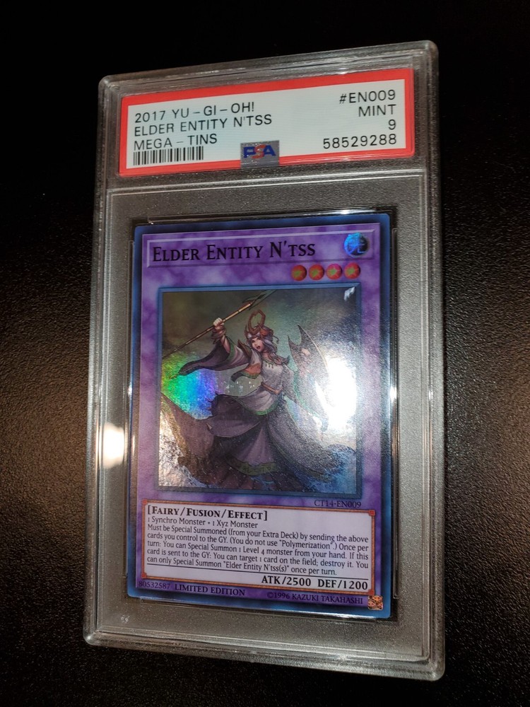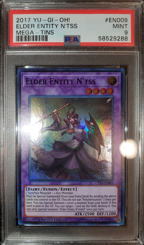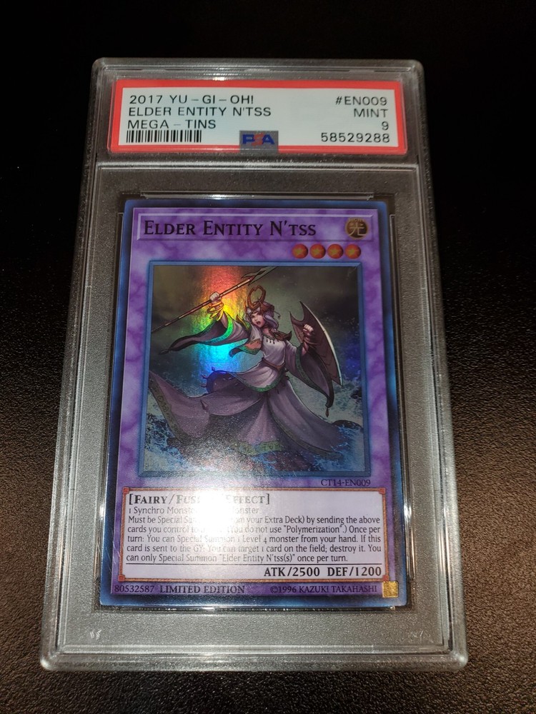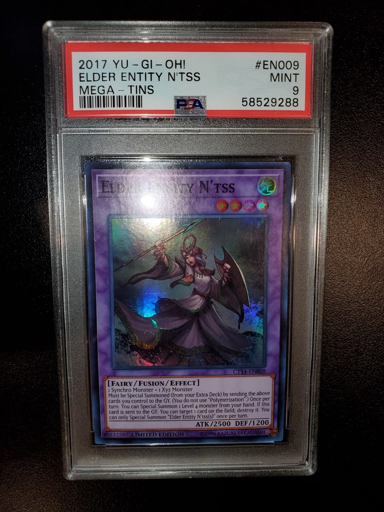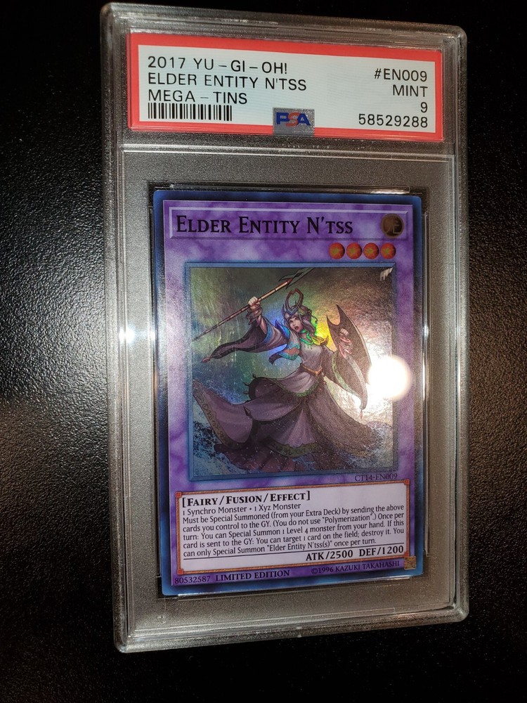 Yugioh 2017 Elder Entity N'tss Limited Ed. CT14-EN009 PSA 9 Will ship safely & securely. Slab is fitted tight and firmly in a perfect fit plastic sleeve. Placed in small 4x6 bubble mailer that will be sandwiched in between 2 large cuts of cardboard. Further encased in a larger brighter 6x10 bubble mailer to ensure perfect protection during shipment and to retain visibility to USPS workers reducing the possibility of missing packages. As a long time seller on eBay, I want every order placed with me to arrive timely and safely. You are entrusting me with your hard earned money and I will not only meet, but surpass your trusted expectations. Feel free to message for further pictures or questions