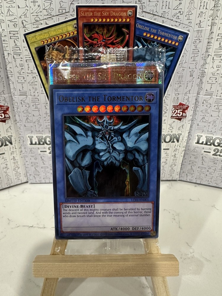 This Yu-Gi-Oh! TCG product is a limited edition Yu-Gi-Oh! Legendary Collection pack celebrating the 25th Anniversary of the franchise. It features exclusive promo cards including iconic characters like Dark Magician, Slifer the Sky Dragon, Red-Eyes Black Dragon, and more. The pack contains 7 cards, one of which is Slifer the Sky Dragon quarter century rare LC01-EN002, known for its powerful abilities in the game. This collectors edition pack with altered/custom art is a must-have for fans of the Yu-Gi-Oh! series looking to commemorate the quarter-century milestone.