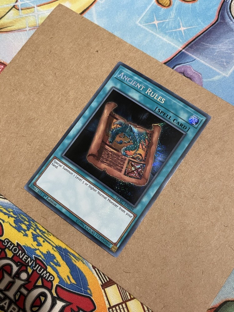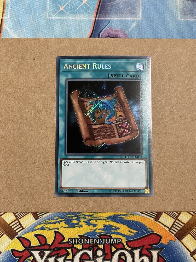 Yugioh Legendary Collection Kaiba Ancient Rules LCKC-EN039 1st Edition Secret Rare NM. Condition as shown in the pictures, feel free to ask for more pics if these aren’t helpful. This card will be protected in sleeves and stored with a toploader in a teambag. It will be shipped in a kraft envelope with cardboard for safety. Thanks and come again! Shipping only in the United States.