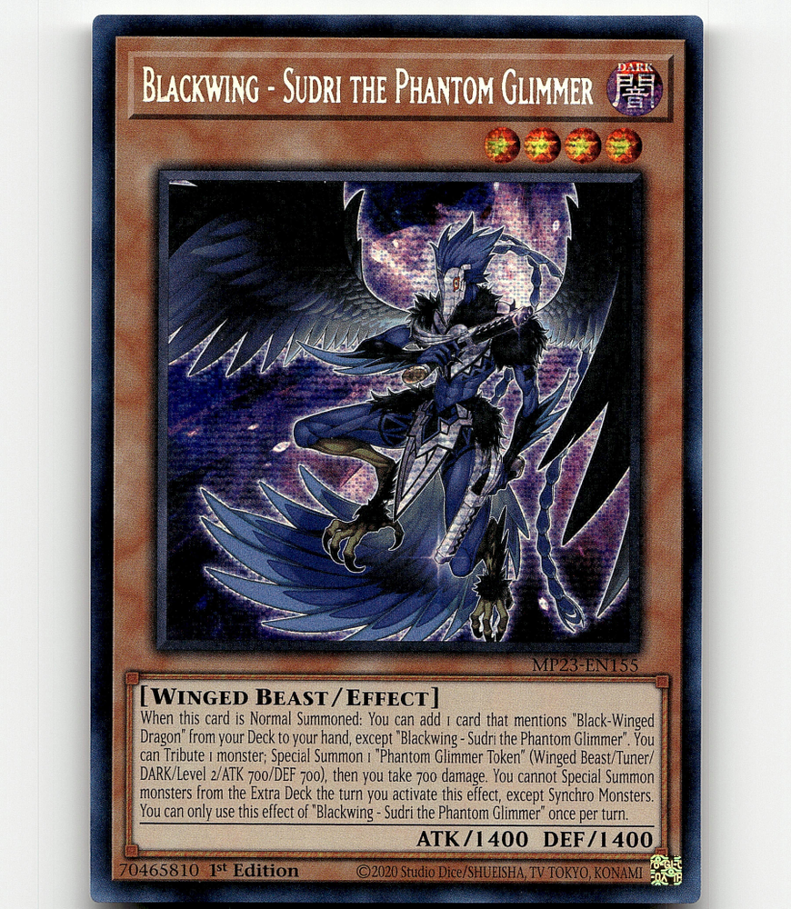 This Blackwing - Sudri card is a fantastic addition to any Yugioh collection, especially for the 25th Anniversary! The card arrived in perfect condition, exactly as pictured, and the seller shipped it quickly with secure packaging. Great communication and smooth transaction—highly recommend for duelists looking to enhance their deck with this awesome Phantom Glimmer card!