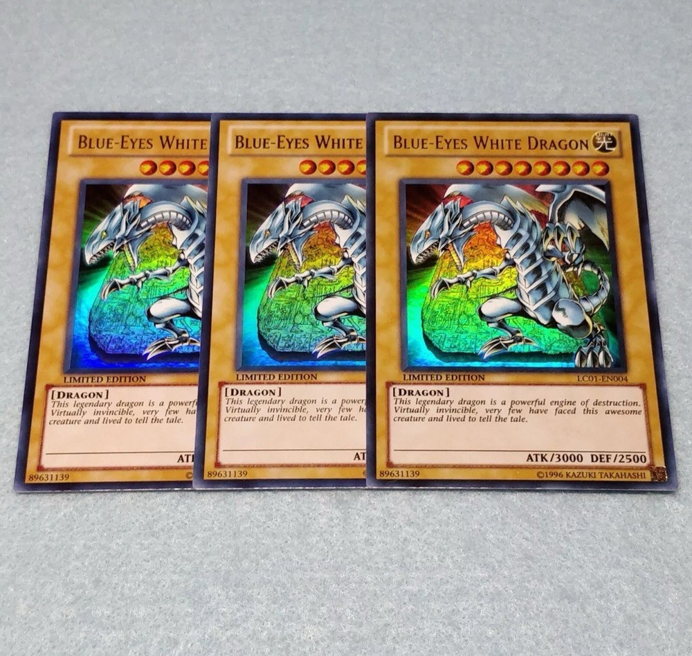 Yugioh Blue Eyes White Dragon LC01 Limited Edition Ultra Rare 3 Card Playset NM. Condition is Ungraded. Shipped with Standard Shipping.