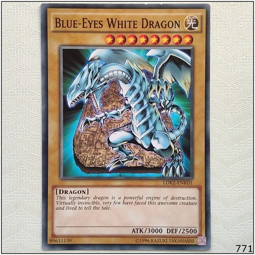 Elevate your YuGiOh! TCG collection with the iconic Blue-Eyes White Dragon from the Legendary Decks II set. With card number LDK2-ENK01, this creature/monster type dragon boasts an attack/power of 3000 and a defense/toughness of 2500, making it a formidable addition to your deck. The card is standard sized, printed on quality card stock, and features the English language. The Blue-Eyes White Dragon is a common/short print rarity card, produced by Konami, and it is not autographed. This unlimited feature dragon card is a must-have for players and collectors alike who aim to enhance their game or preserve a piece of YuGiOh! history. Manufactured in the United States, this card reflects the Light attribute and comes with a regular finish.
