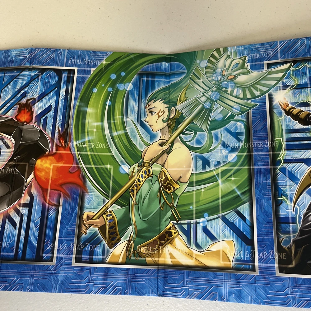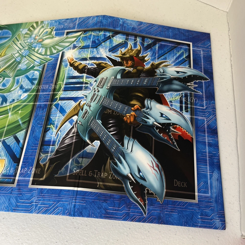 This Yu-Gi-Oh! TCG card game board play mat is a must-have for any fan of the Legendary Collection set. Featuring Kaiba Blue-Eyes, this card stock material mat is perfect for protecting your cards and adding a touch of style to your game. The blue color attribute adds a pop of color to your game, while the autograph-free design keeps the focus on the card game. Whether you're a seasoned player or just starting out, this play mat is a great addition to your collection.