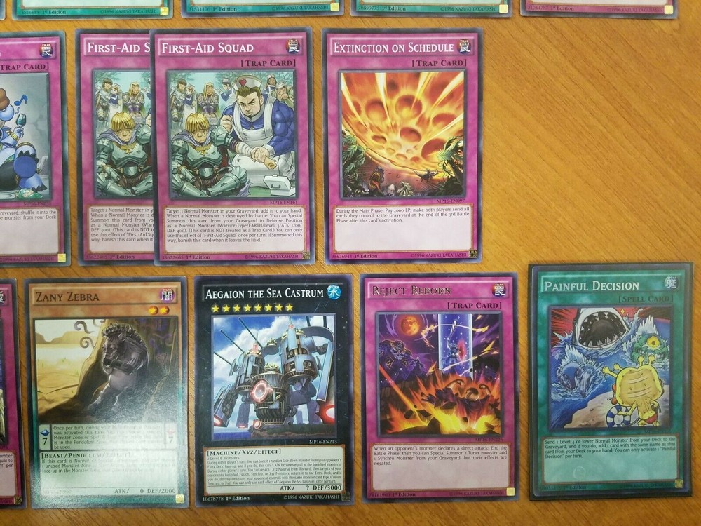 Yugioh Cards 2016 Mega Tin Mega Pack (MP16) Bundle. This bundle contains mostly common cards, but also a secret rare holofoil and 1st editions from the 2016 Mega Tin Mega Pack. All cards are in light play/near mint condition with no noticeable wear or just slight wear around the corners and edges. This bundle contains 30 cards with some duplicates as shown in the photos, including: Reject Reborn 1st Edition - Rare - MP16-EN225 Painful Decision 1st Edition - Secret Rare - MP16-EN151 All cards are 100% genuine as far as I can tell. Please check the photos for the cards you will get. All cards in the photos are included. Card condition definitions are subjective so please check the photos carefully for more details on the condition. Don't hesitate to message me if you want more photos on certain cards.