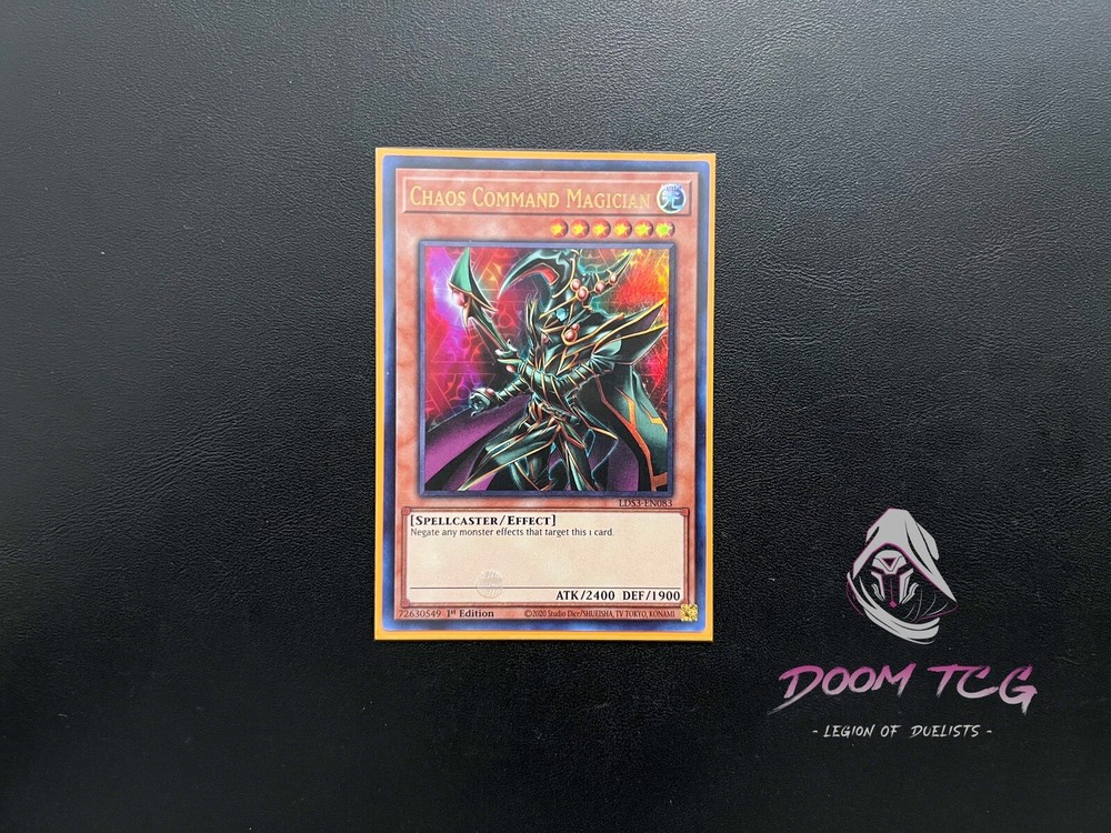 This Ultra Rare 1st edition Chaos Command Magician is a must-have for any Yu-Gi-Oh! TCG player. This Spellcaster Effect Monster card belongs to the Dark Magician Archetype and has a Light color attribute. It is from the Legendary Duelists: Season 3 set and is in ungraded condition. This English language card from Konami features beautiful artwork and is a collectible item for fans of the Yu-Gi-Oh! franchise. The card has not been modified and comes from a smoke-free household. Don't miss your chance to add this card to your collection!
