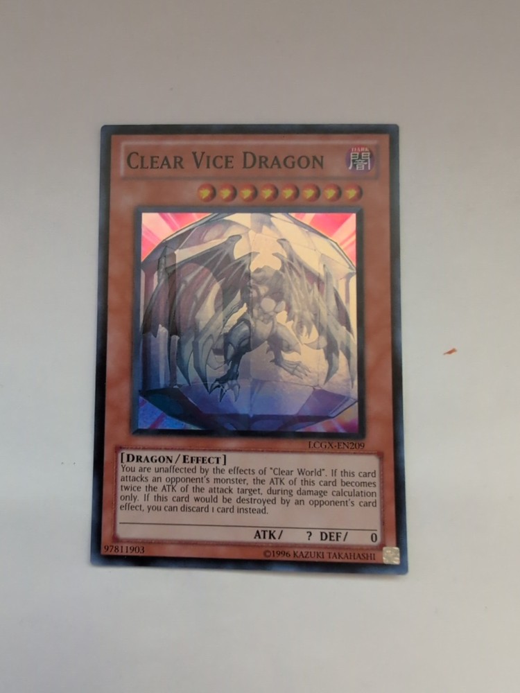 The Yugioh Clear Vice Dragon LCGX-EN209 Super Rare card is a highly sought after collectible in the Yu-Gi-Oh! TCG community. This card from the Legendary Collection 2: The Duel Academy Years set features the Clear Vice Dragon, a powerful Effect card with unlimited edition rarity. Perfect for collectors or players looking to enhance their deck with a rare and unique addition.