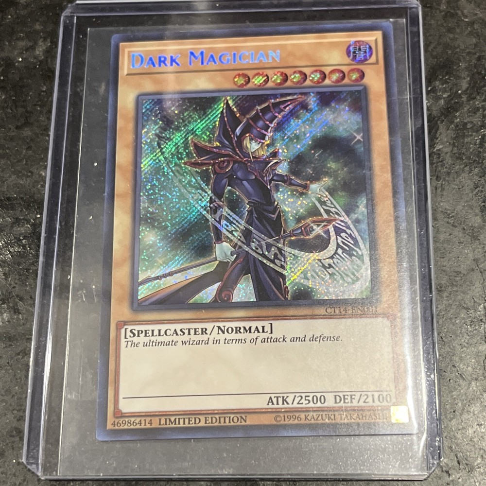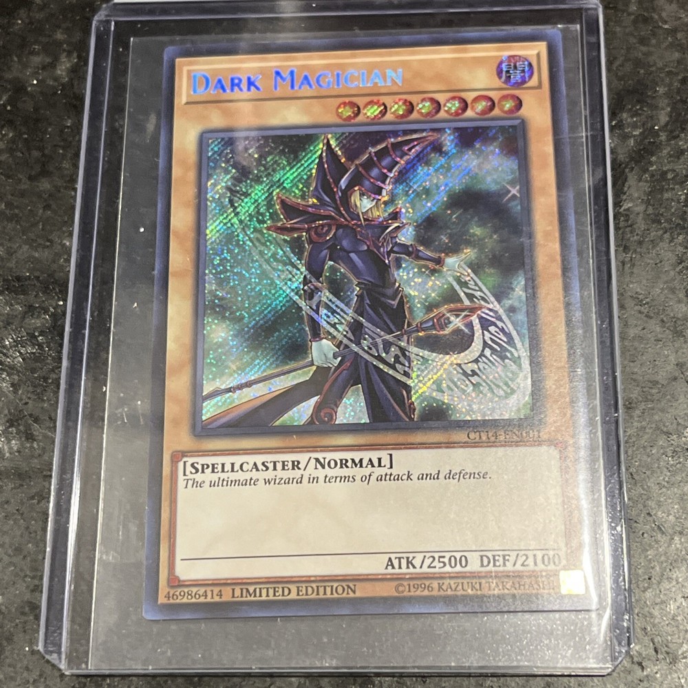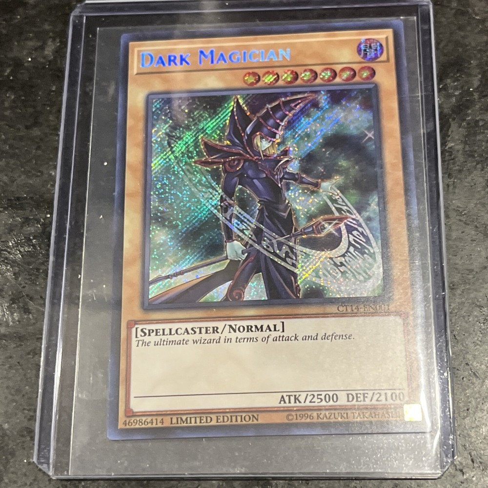 Yugioh Dark Magician CT14-EN001 Limited Edition Secret Rare Ships Same Day. Comes in a new protective sleeve and a new hard card protector