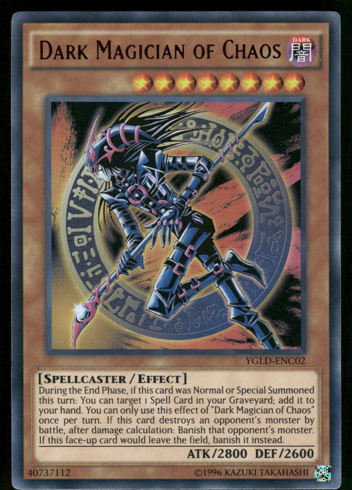 Dark Magician of Chaos YGLD-ENC02 Yugioh! King of Games: Yugi's Legendary Decks Ultra Rare Yugioh! TCG. If multiple cards are listed, you may not receive the exact one in the photos. All copies are in the same condition. Condition is as shown. Please feel free ask if you'd like to see more photos! All card orders packaged with care using a penny sleeve, top loader and a team bag. Singles up to $20 will be shipped in a PWE, $20+ will be shipped in a Bubble Mailer, anything fragile/sealed (depending on the product) will be shipped in a box. All orders are shipped out within 24 hours.