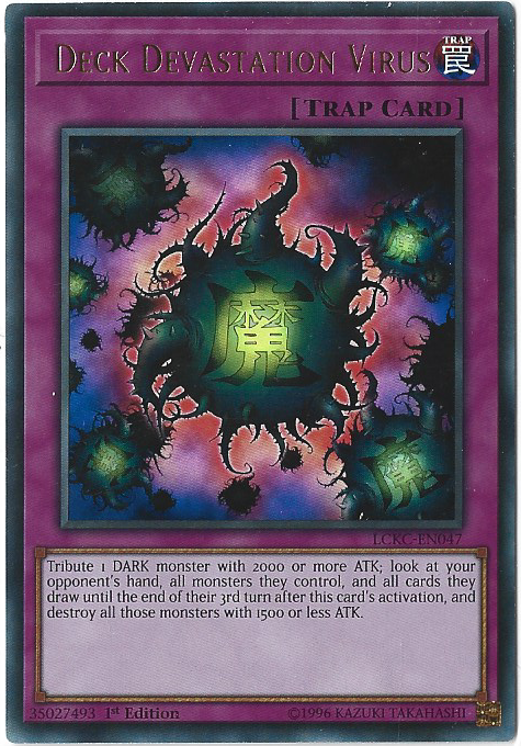 Yugioh! Deck Devastation Virus LCKC-EN047 Ultra Rare 1st Edition NM is a highly sought-after card from the Legendary Collection Kaiba set. This rare card, perfect for any Yu-Gi-Oh! TCG player, features stunning artwork and powerful effects that can devastate your opponent's deck. A must-have addition to any collector's arsenal, this card is sure to enhance your gameplay and collection.