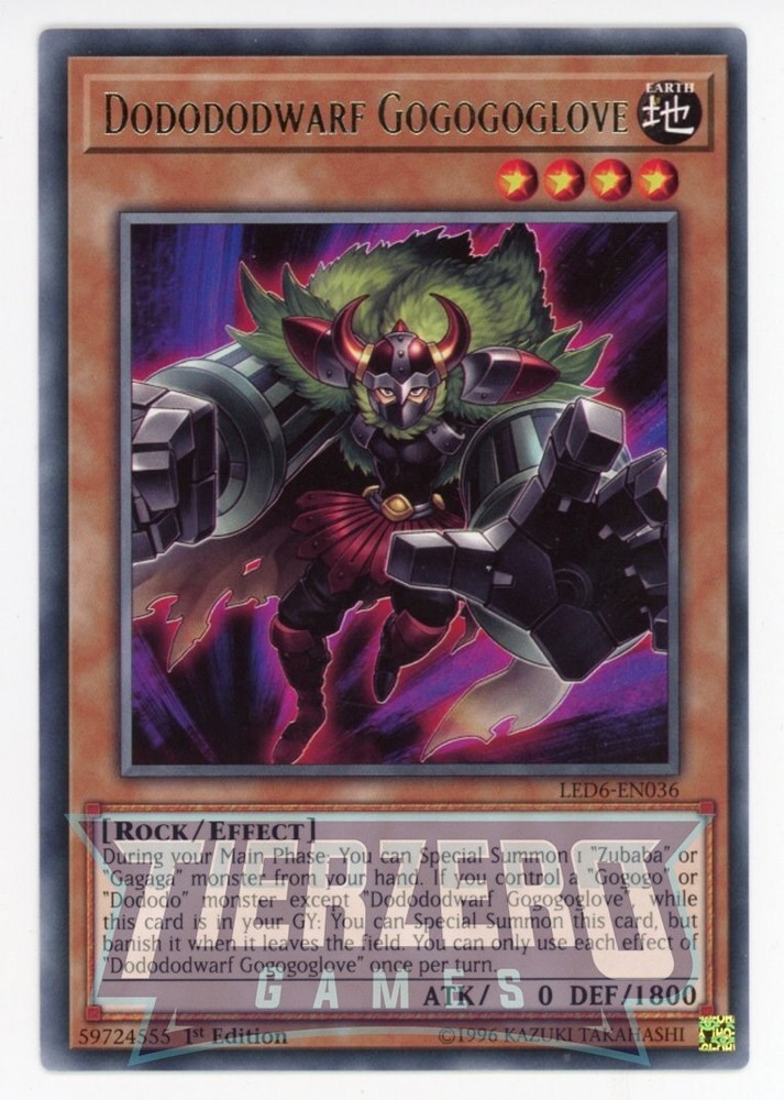 Yugioh Dodododwarf Gogogoglove LED6-EN036 Rare 1st Edition NM/LP Near Mint Condition - Straight from pack to sleeve. Due to manufacturing there can be inconsistencies in card condition. TierZero Games will always do our utmost to offer the most competitive prices on the market both on eBay and on our website. Card picture is an example of product - not the exact card you will receive. Please feel free to contact us with any questions or queries and thanks for shopping at TierZero Games.