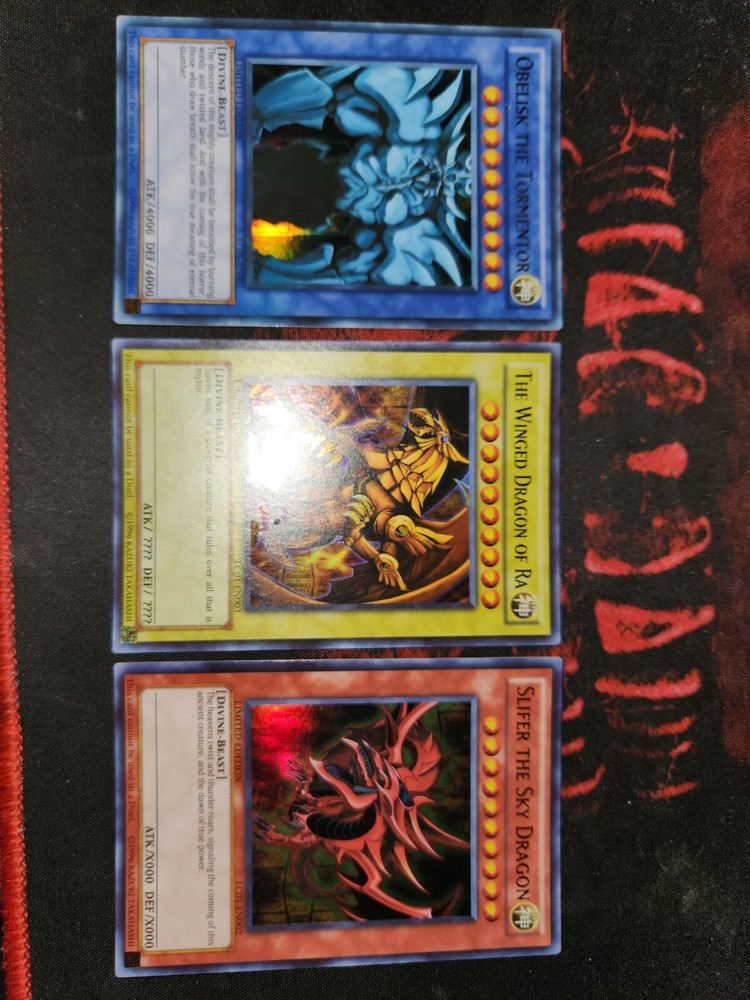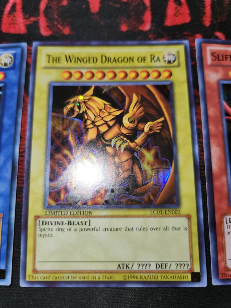 Yugioh! Dragon of Ra, Obelisk, Slifer LC01 3-Card Egyptian God Set NM.