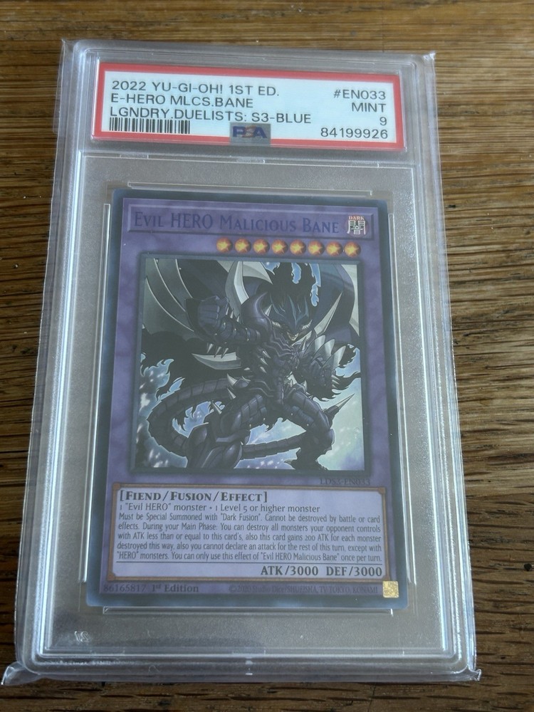 Yugioh Evil Hero Malicious Bane PSA Mint 9 Legendary Duelists. Condition is Graded. Dispatched with Royal Mail Tracked 48....
