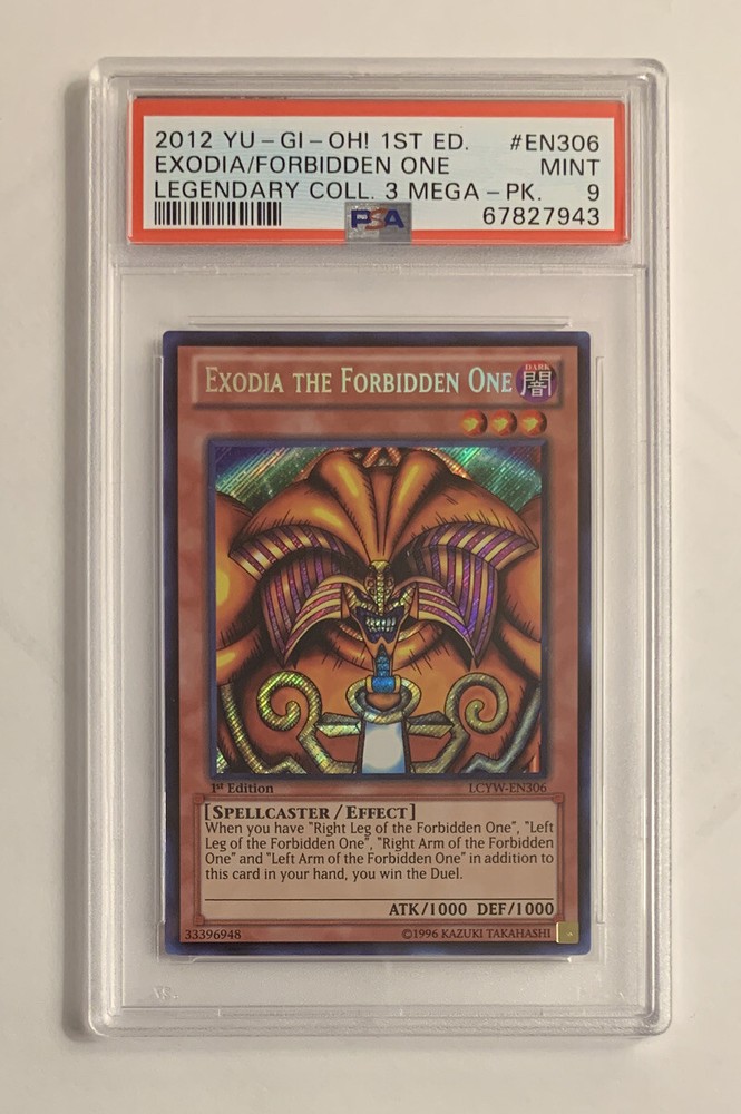 For the avid collectors and fans of Yu-Gi-Oh! TCG, we bring to you the Legendary Collection 3: Yugi's World set featuring the rarest and most sought-after card, Exodia the Forbidden One. This 1st edition Secret Rare card, EN306, is the perfect addition to any collection and is graded PSA 9. This monster card from Konami boasts a stunning Holo finish and features Exodia, the legendary character known for its unbeatable power. This card is a must-have for collectors and fans of the game alike. Get your hands on this rare card now and complete your collection.