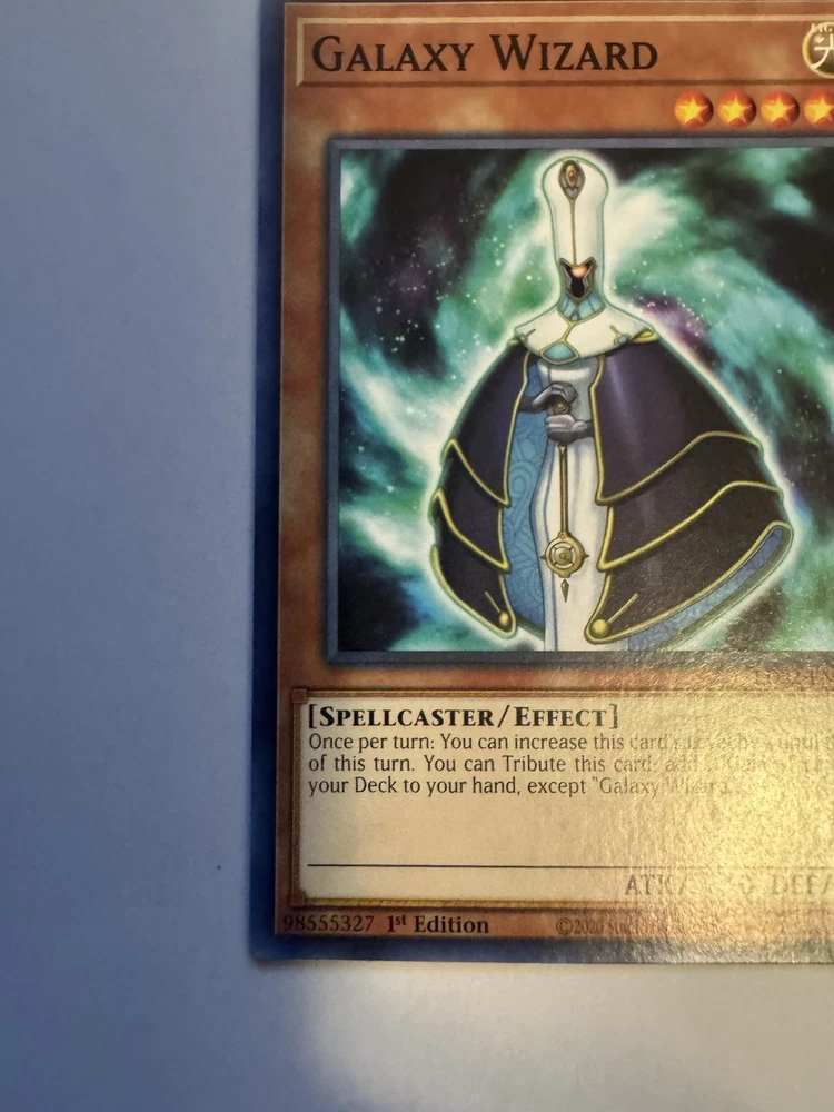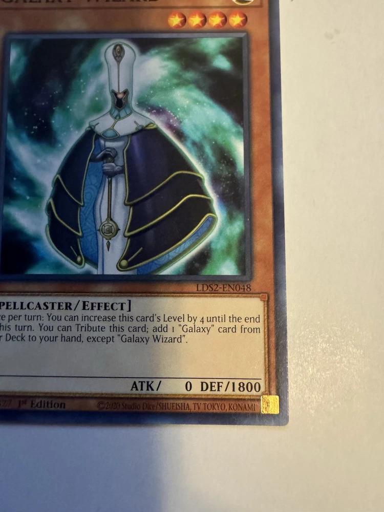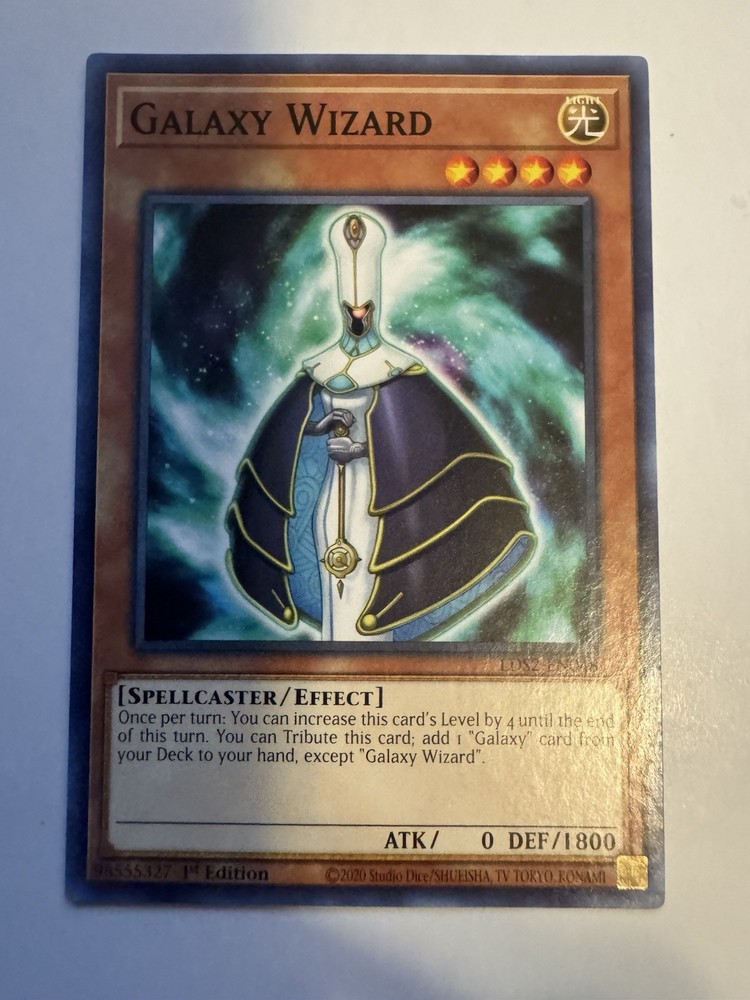 Card is in great condition Im gonna be selling my collection that I have been collecting for over the past 5 years. Follow my profile for new things that I post. Gonna be selling my sealed Pokemon, Yu-Gi-Oh, One Piece and Sports Booster boxes, Booster Packs and Single cards as well as video games and collectible toys Ships Ebay standard Elevate your Yu-Gi-Oh! collection with the Galaxy Wizard card from the Legendary Duelists: Season 2 set. This Spellcaster card, with the card number LDS2-EN048, is a must-have for any enthusiast looking to harness the power of light in their battles. Featuring an impressive 1800 DEF, it's a formidable addition to your deck, ready to tip the scales in your favor.As a 1st Edition Common card, the Galaxy Wizard comes in English and boasts an effect that could be the deciding factor in your duels. With its level 4 status and zero ATK, it focuses on defense, allowing you to protect your other cards and launch attacks with your opponent's own spells. Add this strategic creature/monster to your collection and experience the difference it can make in your gameplay.