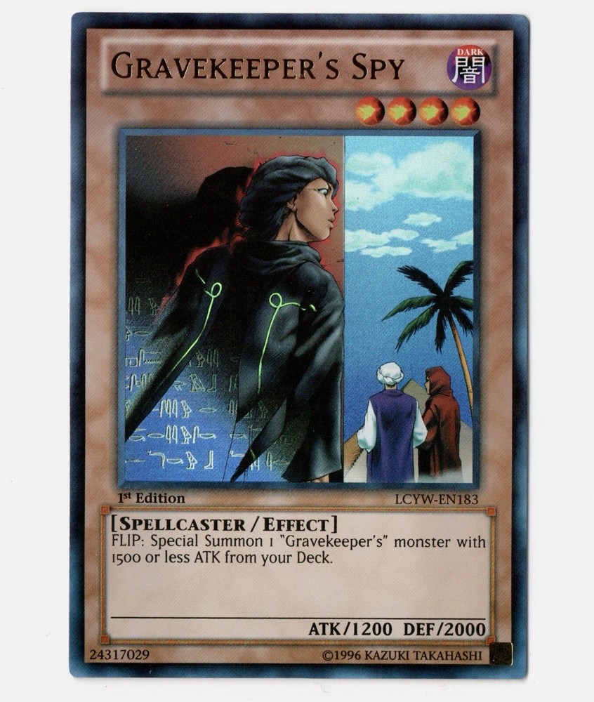 Gravekeeper's Spy from Legendary Collection 3: Yugi's World set. YuGiOh! TCG. Card condition is as shown. Please let me know if you'd like to see more photos of the card, I'd be happy to send them! All card orders packaged with care using a penny sleeve, top loader and a team bag. Orders up to $20 will be shipped in a PWE, $20+ will be shipped in a Bubble Mailer, anything fragile/sealed (depending on the product) will be shipped in a box. All orders are shipped out within 24 hours.