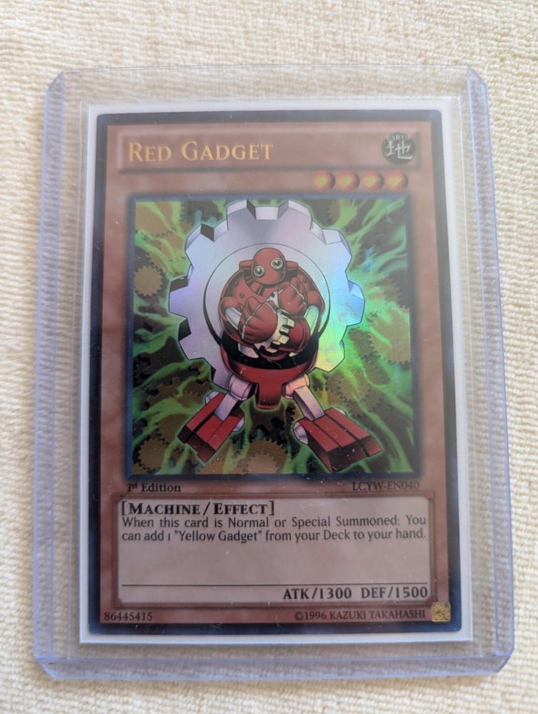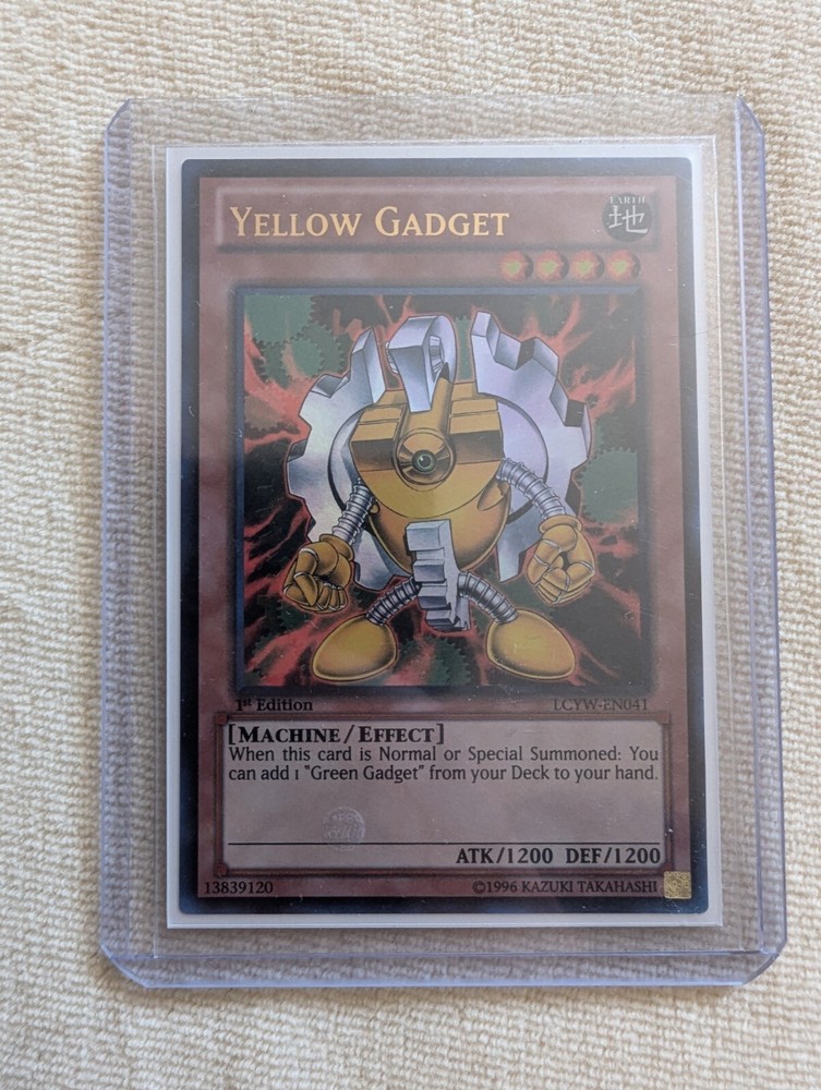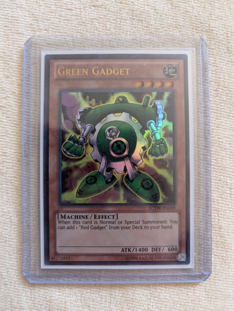 Selling a combo of 3 ultra rare cards: Green Gadget, Red Gadget, and Yellow Gadget! Card comes from the Legendary Collection 3: Yugi's World set . Yugioh number: LCYW-EN039, LCYW-EN040, and LCYW-EN041 . Red and yellow gadget 1st edition! Ultra rare Come get your cards whether it be for nostalgia, collecting, or actual use in duels. All cards are in near mint condition. All cards are encased in a sleeve that is then placed into a top loader for maximum protection of the card as seen in the picture. Perfect for collecting/display purposes. Green Gadget, Red Gadget, Yellow Gadget Items included in the listing: - 1x Green Gadget ( Ultra Rare) - 1x Red Gadget (Ultra Rare) - 1x Yellow Gadget (Ultra Rare) Feel free to message if you have any questions! Disclaimer: All cards are in near mint condition unless otherwise specified in title or description. This listing consists of only the items mentioned in the description and pictured in the images above. Rarities for cards are as seen in the picture and noted in the description. What you see in the pictures is what you get.