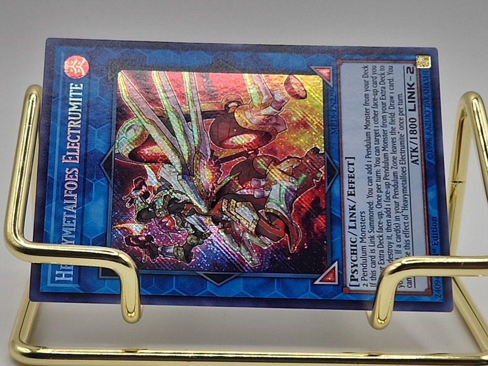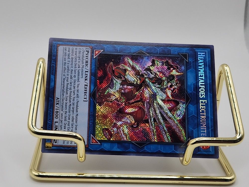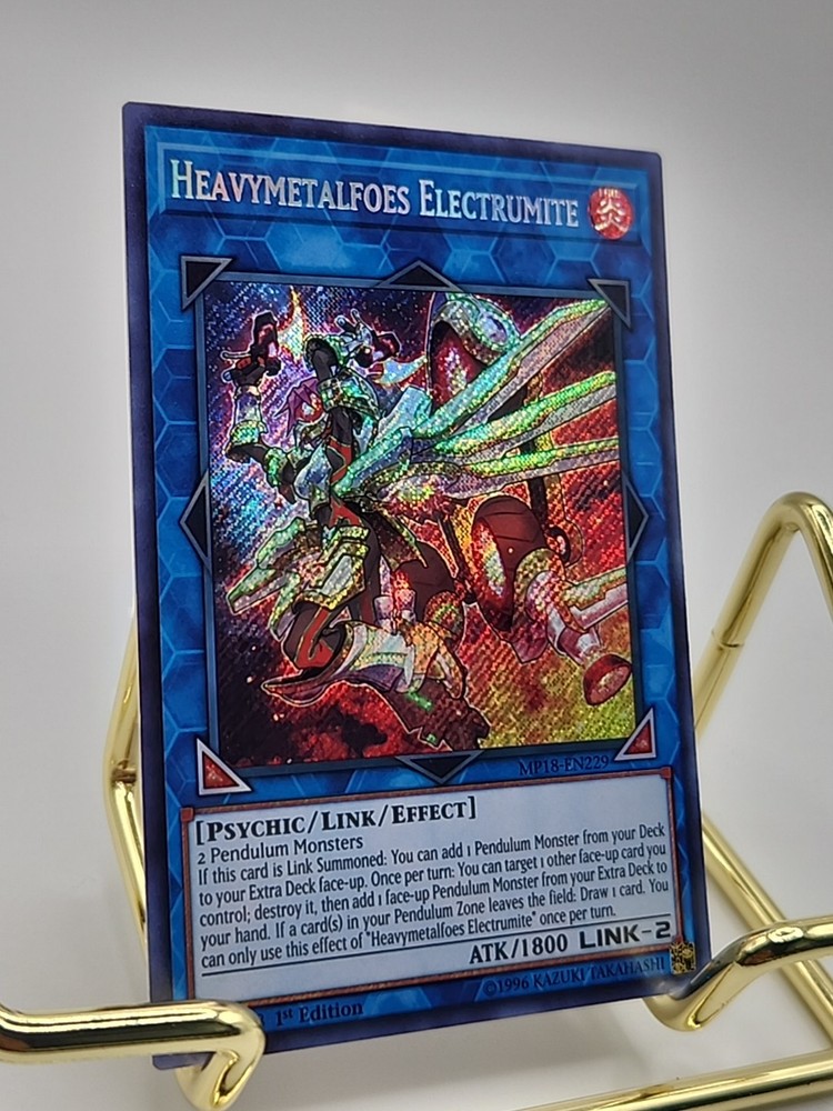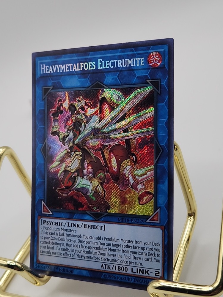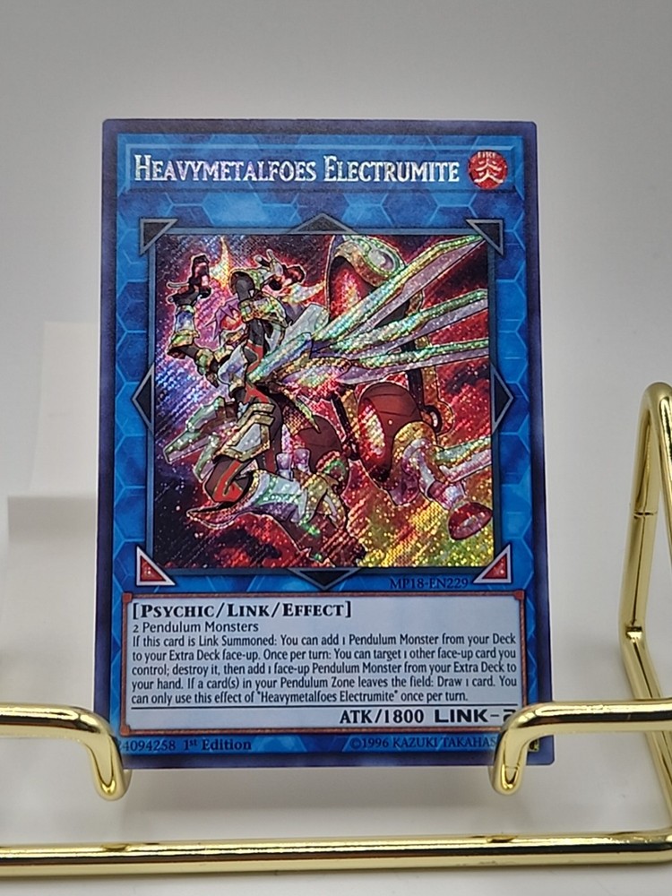 eBay Listing Template Yugioh Heavymetalfoes Electrumite MP18-EN229 Secret Rare 1st Ed NM Actual pictures of item are shown, additional available upon request. Please let me know if you have any questions or concerns. Shipping Information Orders ship out within 2-3 business days of payment being received, often within 1 business day. All cards are securely sealed inside a sleeve + top-loader. The default shipping method will be eBay Standard Envelope for most orders, expedited options are available. International orders may be subject to customs/duties, which are solely the buyer's responsibility. Feedback and Questions I always strive for my buyers to be satisfied and leave positive 5-star feedback. If you have any questions or concerns, please feel free to contact me at any time through through eBay and I will reply ASAP. I do have a day job, so it may take a few days to reply. Most times however I can answer within 24 hours. Card Conditions If you have any specific expectations or requirements as to the condition an item needs to be in, please contact me before bidding and I will provide excellent high-quality resolution pictures for you. I try to notice every defect I can, but oversights can happen - in those situations, please reach out to me first and we can resolve the issue together. Thank you for looking, good luck! For more deals, visit my eBay store: ~~~A Trove of Mythical Treasures~~~