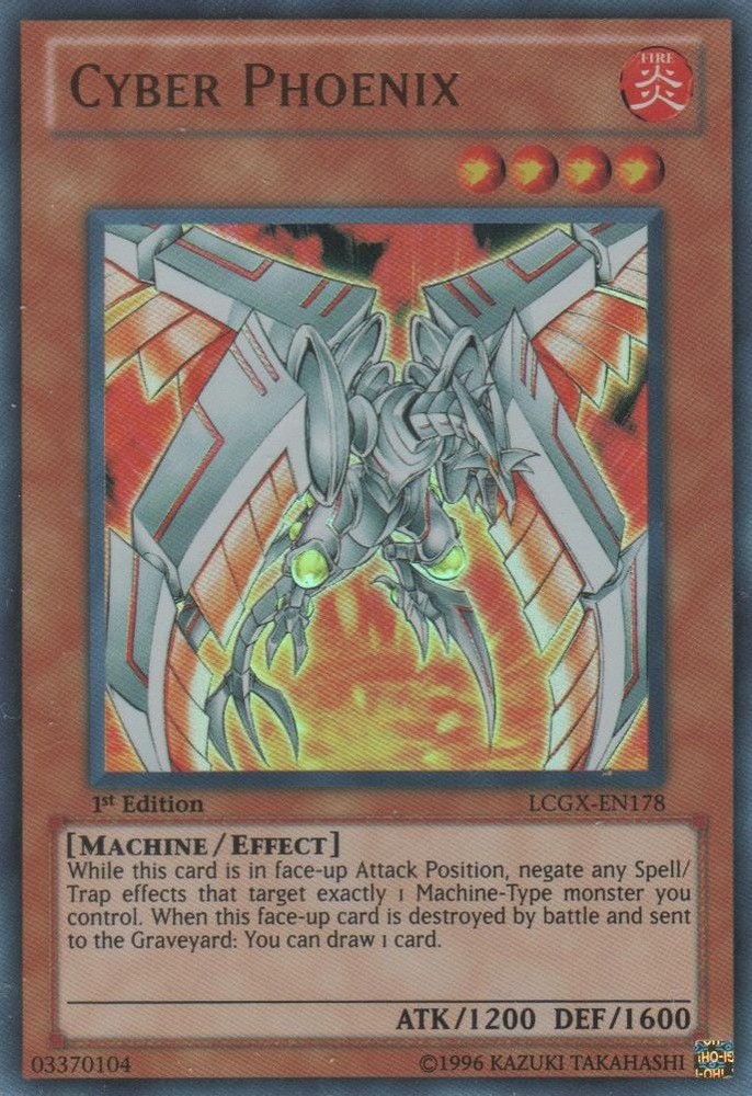 You are bidding on: Yugioh! Cyber Phoenix - LCGX-EN178 - Ultra Rare - 1st Edition Condition: Condition: Lightly Played | Language: English All photos are stock, unless mentioned otherwise. Card edition, rarity, etc. are listed in the title and description. Cards are in English unless otherwise stated in title or description. Items will be shipped within 1 business day upon receiving cleared payment. We ship Monday through Saturday in order to get the item(s) to you as quickly as possible Before leaving neutral or negative feedback, please contact us beforehand so we can discuss the issue. Feel free to message me with any questions you have regarding this auction or my policies. Shipping Options: USPS Mail - $0.99 Orders $29.99 (exc. sales tax) and under will be sent in a white envelope in a card saver + soft sleeve using eBay's Standard Envelope tracking service. Orders $30.00 (exc. sales tax) and over will be sent with free USPS tracking information w/ toploader + soft sleeve. Priority Mail - $9.99 2-3 Day shipping Orders will be shipped in a flat rate envelope in a toploader + soft sleeve. Priority Express Mail - $29.99 1-2 Day shipping Orders will be shipped in a flate rate envelope in a toploader + soft sleeve. *All orders over $100 will be sent with free insurance. All orders over $250 will be sent with free insurance and signature confirmation.* Card Grading: Near Mint (NM) - Cards with this grade will show minimal to no wear from shuffling, play or handling and can have a nearly unmarked surface, crisp corners and unblemished edges outside of a few minimal flaws. Holographic cards are more scrutinized than non-holo cards. Lightly Played (LP) - Cards with this grade may have a few dings, light playwear and/or edgewear. A few surface scratches are acceptable. A crease or bend is acceptable if it is less than approximately 1/2 inch in size and is only visible on one side. Moderately Played (MP) - Cards with this grade may have dings, playwear and/or edgwear, 1 or 2 creases or bends that do not go through the length of the card. Cards may have a 1 or 2 deep scratches. Heavily Played (HP) - Cards with this grade may have dings, playwear and/or edgwear, creases or bends that may go the length of the card, markings and/or coloring, tears on the edges. Despite being the lowest of grading, these cards are still tournament legal. If you receive a card not in the stated condition, please contact us to return the item for a full refund. Thank you for buying.