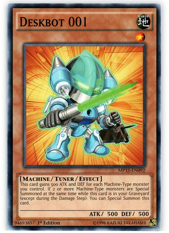 You are bidding on: Yugioh! Deskbot 001 - MP15-EN092 - Common - 1st Edition Condition: Condition: Lightly Played | Language: English All photos are stock, unless mentioned otherwise. Card edition, rarity, etc. are listed in the title and description. Cards are in English unless otherwise stated in title or description. Items will be shipped within 1 business day upon receiving cleared payment. We ship Monday through Saturday in order to get the item(s) to you as quickly as possible Before leaving neutral or negative feedback, please contact us beforehand so we can discuss the issue. Feel free to message me with any questions you have regarding this auction or my policies. Shipping Options: USPS Mail - $0.99 Orders $29.99 (exc. sales tax) and under will be sent in a white envelope in a card saver + soft sleeve using eBay's Standard Envelope tracking service. Orders $30.00 (exc. sales tax) and over will be sent with free USPS tracking information w/ toploader + soft sleeve. Priority Mail - $9.99 2-3 Day shipping Orders will be shipped in a flat rate envelope in a toploader + soft sleeve. Priority Express Mail - $29.99 1-2 Day shipping Orders will be shipped in a flate rate envelope in a toploader + soft sleeve. *All orders over $100 will be sent with free insurance. All orders over $250 will be sent with free insurance and signature confirmation.* Card Grading: Near Mint (NM) - Cards with this grade will show minimal to no wear from shuffling, play or handling and can have a nearly unmarked surface, crisp corners and unblemished edges outside of a few minimal flaws. Holographic cards are more scrutinized than non-holo cards. Lightly Played (LP) - Cards with this grade may have a few dings, light playwear and/or edgewear. A few surface scratches are acceptable. A crease or bend is acceptable if it is less than approximately 1/2 inch in size and is only visible on one side. Moderately Played (MP) - Cards with this grade may have dings, playwear and/or edgwear, 1 or 2 creases or bends that do not go through the length of the card. Cards may have a 1 or 2 deep scratches. Heavily Played (HP) - Cards with this grade may have dings, playwear and/or edgwear, creases or bends that may go the length of the card, markings and/or coloring, tears on the edges. Despite being the lowest of grading, these cards are still tournament legal. If you receive a card not in the stated condition, please contact us to return the item for a full refund. Thank you for buying.