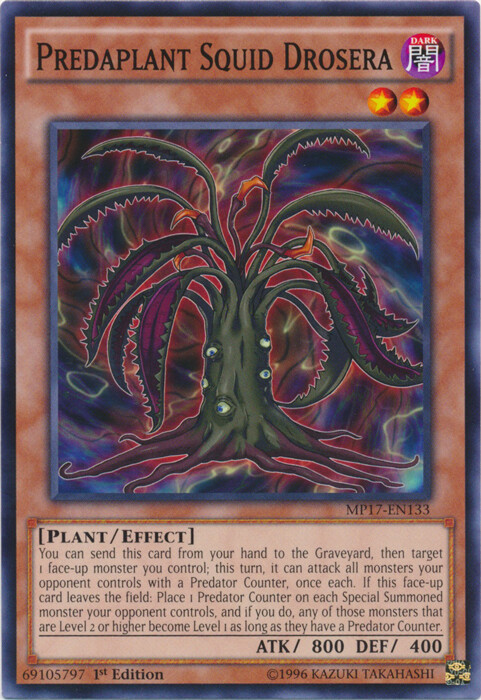 You are bidding on: Yugioh! Predaplant Squid Drosera - MP17-EN133 - Common - 1st Edition Condition: Condition: Lightly Played | Language: English All photos are stock, unless mentioned otherwise. Card edition, rarity, etc. are listed in the title and description. Cards are in English unless otherwise stated in title or description. Items will be shipped within 1 business day upon receiving cleared payment. We ship Monday through Saturday in order to get the item(s) to you as quickly as possible Before leaving neutral or negative feedback, please contact us beforehand so we can discuss the issue. Feel free to message me with any questions you have regarding this auction or my policies. Shipping Options: USPS Mail - $0.99 Orders $29.99 (exc. sales tax) and under will be sent in a white envelope in a card saver + soft sleeve using eBay's Standard Envelope tracking service. Orders $30.00 (exc. sales tax) and over will be sent with free USPS tracking information w/ toploader + soft sleeve. Priority Mail - $9.99 2-3 Day shipping Orders will be shipped in a flat rate envelope in a toploader + soft sleeve. Priority Express Mail - $29.99 1-2 Day shipping Orders will be shipped in a flate rate envelope in a toploader + soft sleeve. *All orders over $100 will be sent with free insurance. All orders over $250 will be sent with free insurance and signature confirmation.* Card Grading: Near Mint (NM) - Cards with this grade will show minimal to no wear from shuffling, play or handling and can have a nearly unmarked surface, crisp corners and unblemished edges outside of a few minimal flaws. Holographic cards are more scrutinized than non-holo cards. Lightly Played (LP) - Cards with this grade may have a few dings, light playwear and/or edgewear. A few surface scratches are acceptable. A crease or bend is acceptable if it is less than approximately 1/2 inch in size and is only visible on one side. Moderately Played (MP) - Cards with this grade may have dings, playwear and/or edgwear, 1 or 2 creases or bends that do not go through the length of the card. Cards may have a 1 or 2 deep scratches. Heavily Played (HP) - Cards with this grade may have dings, playwear and/or edgwear, creases or bends that may go the length of the card, markings and/or coloring, tears on the edges. Despite being the lowest of grading, these cards are still tournament legal. If you receive a card not in the stated condition, please contact us to return the item for a full refund. Thank you for buying.