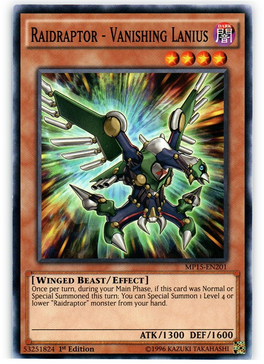 You are bidding on: Yugioh! Raidraptor - Vanishing Lanius - MP15-EN201 - Common - 1st Edition Condition: Condition: Lightly Played | Language: English All photos are stock, unless mentioned otherwise. Card edition, rarity, etc. are listed in the title and description. Cards are in English unless otherwise stated in title or description. Items will be shipped within 1 business day upon receiving cleared payment. We ship Monday through Saturday in order to get the item(s) to you as quickly as possible Before leaving neutral or negative feedback, please contact us beforehand so we can discuss the issue. Feel free to message me with any questions you have regarding this auction or my policies. Shipping Options: USPS Mail - $0.99 Orders $29.99 (exc. sales tax) and under will be sent in a white envelope in a card saver + soft sleeve using eBay's Standard Envelope tracking service. Orders $30.00 (exc. sales tax) and over will be sent with free USPS tracking information w/ toploader + soft sleeve. Priority Mail - $9.99 2-3 Day shipping Orders will be shipped in a flat rate envelope in a toploader + soft sleeve. Priority Express Mail - $29.99 1-2 Day shipping Orders will be shipped in a flate rate envelope in a toploader + soft sleeve. *All orders over $100 will be sent with free insurance. All orders over $250 will be sent with free insurance and signature confirmation.* Card Grading: Near Mint (NM) - Cards with this grade will show minimal to no wear from shuffling, play or handling and can have a nearly unmarked surface, crisp corners and unblemished edges outside of a few minimal flaws. Holographic cards are more scrutinized than non-holo cards. Lightly Played (LP) - Cards with this grade may have a few dings, light playwear and/or edgewear. A few surface scratches are acceptable. A crease or bend is acceptable if it is less than approximately 1/2 inch in size and is only visible on one side. Moderately Played (MP) - Cards with this grade may have dings, playwear and/or edgwear, 1 or 2 creases or bends that do not go through the length of the card. Cards may have a 1 or 2 deep scratches. Heavily Played (HP) - Cards with this grade may have dings, playwear and/or edgwear, creases or bends that may go the length of the card, markings and/or coloring, tears on the edges. Despite being the lowest of grading, these cards are still tournament legal. If you receive a card not in the stated condition, please contact us to return the item for a full refund. Thank you for buying.