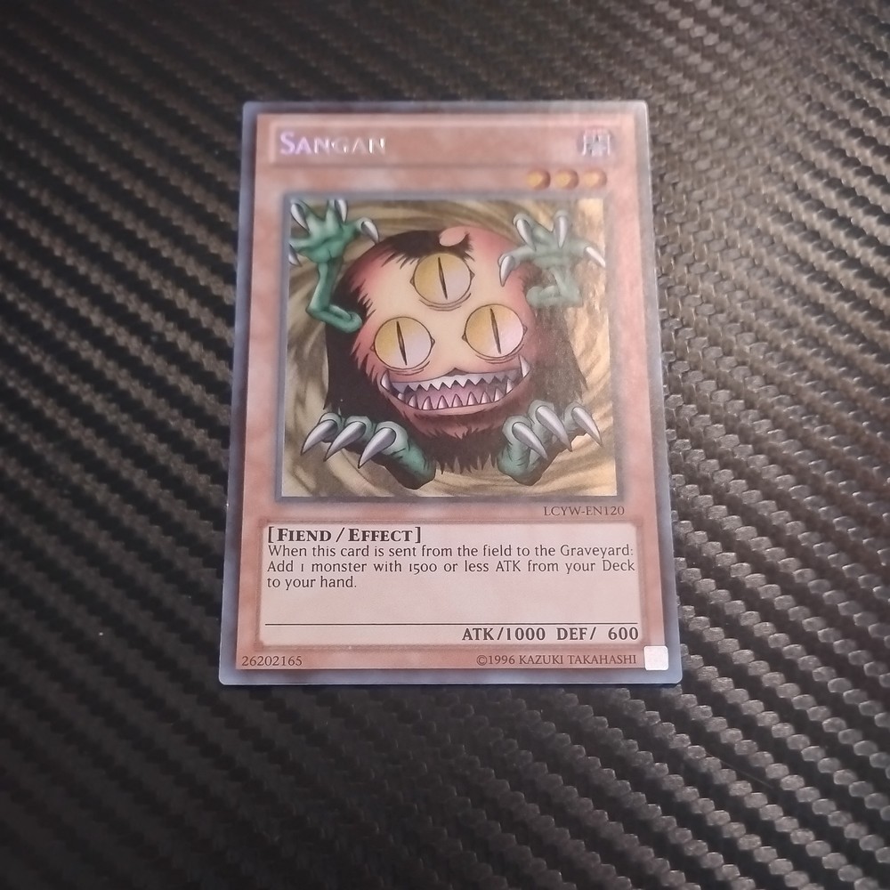 Dive into the strategic depths of Yu-Gi-Oh! with the formidable Sangan, a Secret Rare card from the Legendary Collection 3: Yugi's World set. As an Effect Monster with Dark attribute and 1000 ATK/600 DEF, Sangan (LCYW-EN120) is a formidable addition to any deck, enhancing your gameplay with its unique abilities. Collectors and players alike will appreciate the rarity and quality of this card. Its Unlimited Edition status ensures it stands out in your collection, while its Fiend creature/monster type signifies its powerful presence on the playing field. Embrace the strength of Sangan and elevate your game today.