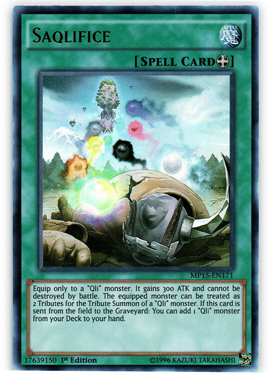 You are bidding on: Yugioh! Saqlifice - MP15-EN171 - Ultra Rare - 1st Edition Condition: Condition: Lightly Played | Language: English All photos are stock, unless mentioned otherwise. Card edition, rarity, etc. are listed in the title and description. Cards are in English unless otherwise stated in title or description. Items will be shipped within 1 business day upon receiving cleared payment. We ship Monday through Saturday in order to get the item(s) to you as quickly as possible Before leaving neutral or negative feedback, please contact us beforehand so we can discuss the issue. Feel free to message me with any questions you have regarding this auction or my policies. Shipping Options: USPS Mail - $0.99 Orders $29.99 (exc. sales tax) and under will be sent in a white envelope in a card saver + soft sleeve using eBay's Standard Envelope tracking service. Orders $30.00 (exc. sales tax) and over will be sent with free USPS tracking information w/ toploader + soft sleeve. Priority Mail - $9.99 2-3 Day shipping Orders will be shipped in a flat rate envelope in a toploader + soft sleeve. Priority Express Mail - $29.99 1-2 Day shipping Orders will be shipped in a flate rate envelope in a toploader + soft sleeve. *All orders over $100 will be sent with free insurance. All orders over $250 will be sent with free insurance and signature confirmation.* Card Grading: Near Mint (NM) - Cards with this grade will show minimal to no wear from shuffling, play or handling and can have a nearly unmarked surface, crisp corners and unblemished edges outside of a few minimal flaws. Holographic cards are more scrutinized than non-holo cards. Lightly Played (LP) - Cards with this grade may have a few dings, light playwear and/or edgewear. A few surface scratches are acceptable. A crease or bend is acceptable if it is less than approximately 1/2 inch in size and is only visible on one side. Moderately Played (MP) - Cards with this grade may have dings, playwear and/or edgwear, 1 or 2 creases or bends that do not go through the length of the card. Cards may have a 1 or 2 deep scratches. Heavily Played (HP) - Cards with this grade may have dings, playwear and/or edgwear, creases or bends that may go the length of the card, markings and/or coloring, tears on the edges. Despite being the lowest of grading, these cards are still tournament legal. If you receive a card not in the stated condition, please contact us to return the item for a full refund. Thank you for buying.
