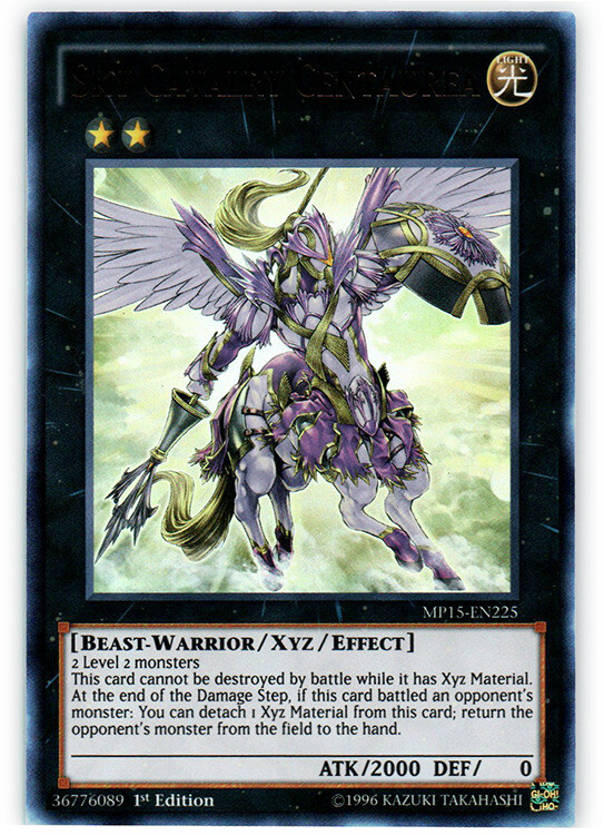 You are bidding on: Yugioh! Sky Cavalry Centaurea - MP15-EN225 - Ultra Rare - 1st Edition Condition: Condition: Lightly Played | Language: English All photos are stock, unless mentioned otherwise. Card edition, rarity, etc. are listed in the title and description. Cards are in English unless otherwise stated in title or description. Items will be shipped within 1 business day upon receiving cleared payment. We ship Monday through Saturday in order to get the item(s) to you as quickly as possible Before leaving neutral or negative feedback, please contact us beforehand so we can discuss the issue. Feel free to message me with any questions you have regarding this auction or my policies. Shipping Options: USPS Mail - $0.99 Orders $29.99 (exc. sales tax) and under will be sent in a white envelope in a card saver + soft sleeve using eBay's Standard Envelope tracking service. Orders $30.00 (exc. sales tax) and over will be sent with free USPS tracking information w/ toploader + soft sleeve. Priority Mail - $9.99 2-3 Day shipping Orders will be shipped in a flat rate envelope in a toploader + soft sleeve. Priority Express Mail - $29.99 1-2 Day shipping Orders will be shipped in a flate rate envelope in a toploader + soft sleeve. *All orders over $100 will be sent with free insurance. All orders over $250 will be sent with free insurance and signature confirmation.* Card Grading: Near Mint (NM) - Cards with this grade will show minimal to no wear from shuffling, play or handling and can have a nearly unmarked surface, crisp corners and unblemished edges outside of a few minimal flaws. Holographic cards are more scrutinized than non-holo cards. Lightly Played (LP) - Cards with this grade may have a few dings, light playwear and/or edgewear. A few surface scratches are acceptable. A crease or bend is acceptable if it is less than approximately 1/2 inch in size and is only visible on one side. Moderately Played (MP) - Cards with this grade may have dings, playwear and/or edgwear, 1 or 2 creases or bends that do not go through the length of the card. Cards may have a 1 or 2 deep scratches. Heavily Played (HP) - Cards with this grade may have dings, playwear and/or edgwear, creases or bends that may go the length of the card, markings and/or coloring, tears on the edges. Despite being the lowest of grading, these cards are still tournament legal. If you receive a card not in the stated condition, please contact us to return the item for a full refund. Thank you for buying.