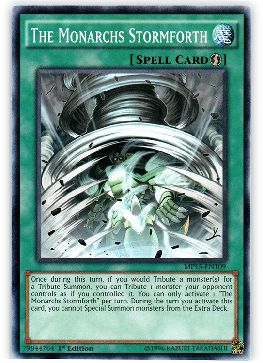 You are bidding on: Yugioh! The Monarchs Stormforth - MP15-EN109 - Common - 1st Edition Condition: Condition: Lightly Played | Language: English All photos are stock, unless mentioned otherwise. Card edition, rarity, etc. are listed in the title and description. Cards are in English unless otherwise stated in title or description. Items will be shipped within 1 business day upon receiving cleared payment. We ship Monday through Saturday in order to get the item(s) to you as quickly as possible Before leaving neutral or negative feedback, please contact us beforehand so we can discuss the issue. Feel free to message me with any questions you have regarding this auction or my policies. Shipping Options: USPS Mail - $0.99 Orders $29.99 (exc. sales tax) and under will be sent in a white envelope in a card saver + soft sleeve using eBay's Standard Envelope tracking service. Orders $30.00 (exc. sales tax) and over will be sent with free USPS tracking information w/ toploader + soft sleeve. Priority Mail - $9.99 2-3 Day shipping Orders will be shipped in a flat rate envelope in a toploader + soft sleeve. Priority Express Mail - $29.99 1-2 Day shipping Orders will be shipped in a flate rate envelope in a toploader + soft sleeve. *All orders over $100 will be sent with free insurance. All orders over $250 will be sent with free insurance and signature confirmation.* Card Grading: Near Mint (NM) - Cards with this grade will show minimal to no wear from shuffling, play or handling and can have a nearly unmarked surface, crisp corners and unblemished edges outside of a few minimal flaws. Holographic cards are more scrutinized than non-holo cards. Lightly Played (LP) - Cards with this grade may have a few dings, light playwear and/or edgewear. A few surface scratches are acceptable. A crease or bend is acceptable if it is less than approximately 1/2 inch in size and is only visible on one side. Moderately Played (MP) - Cards with this grade may have dings, playwear and/or edgwear, 1 or 2 creases or bends that do not go through the length of the card. Cards may have a 1 or 2 deep scratches. Heavily Played (HP) - Cards with this grade may have dings, playwear and/or edgwear, creases or bends that may go the length of the card, markings and/or coloring, tears on the edges. Despite being the lowest of grading, these cards are still tournament legal. If you receive a card not in the stated condition, please contact us to return the item for a full refund. Thank you for buying.